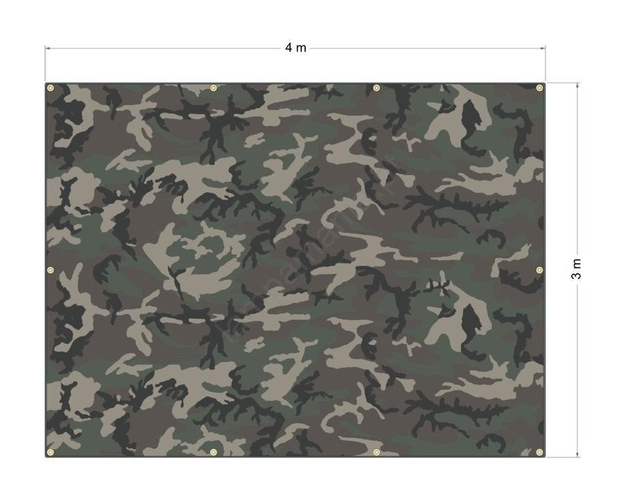 • Toldo leve em camuflagem florestal com dimensões de 3 x 4 m.