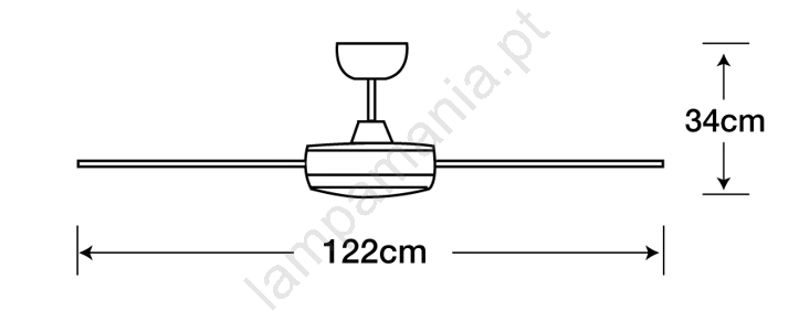 • Ventilador de teto dimmerizável com luz, controlado por controle remoto.