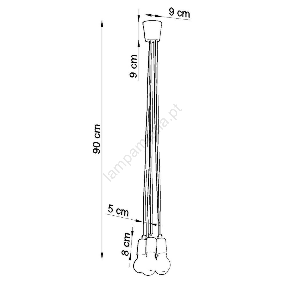 Candelabro num fio DIEGO 5xE27/60W/230V caracteriza-se por um design agradável e funcional.  Uma lâmpada com casquilho E27 é adequada para a iluminação Aqui, pode comprar outras lâmpadas a preços vantajosos. Terá um complemento interessante para a sua casa.