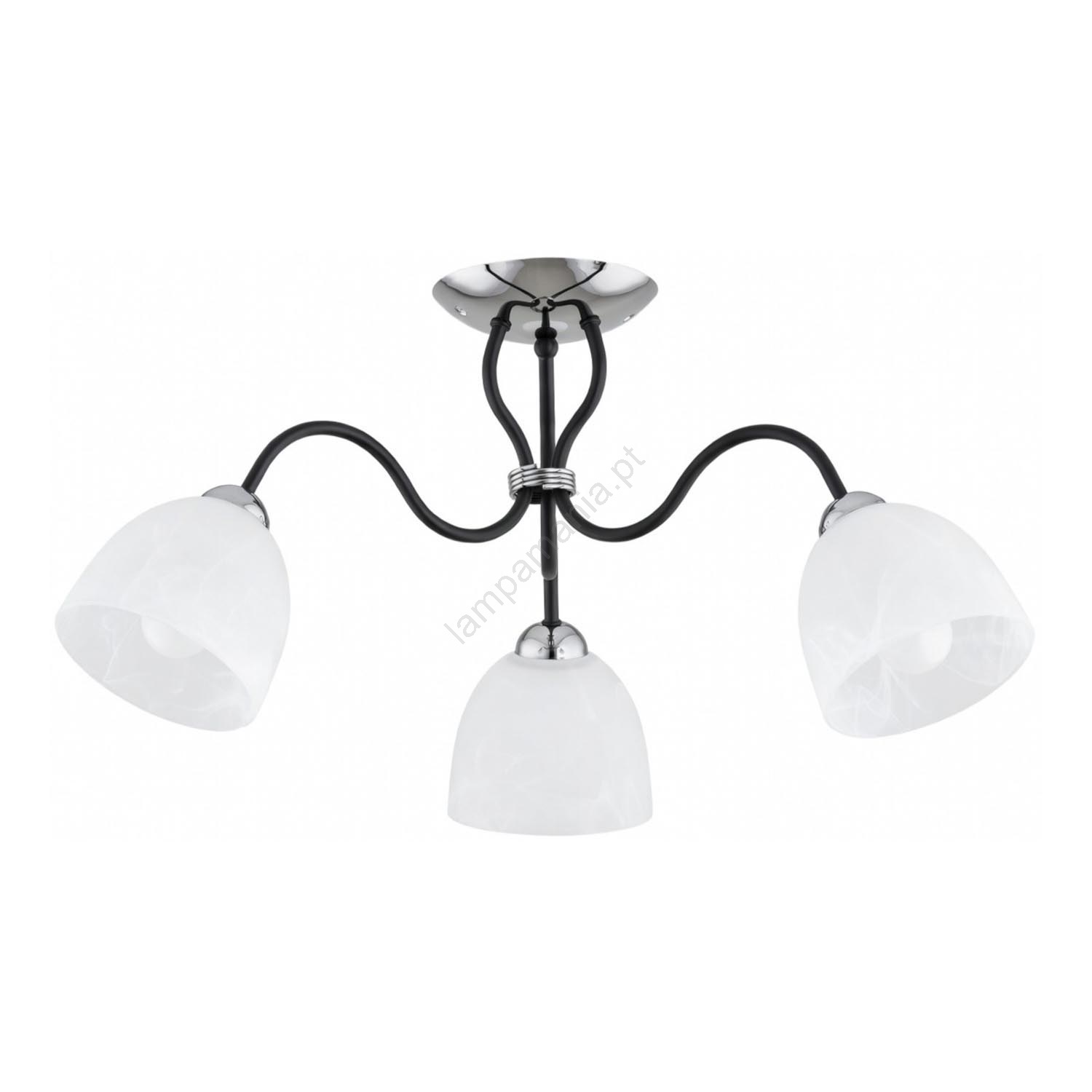Lustre de sobrepor ARIEL 3xE27/15W/230V cromado brilhante/preto caracteriza-se por um design agradável e funcional.  Uma lâmpada com casquilho E27 é adequada para a iluminação Aqui, pode comprar outras lâmpadas a preços vantajosos. Terá um complemento interessante para a sua casa.
