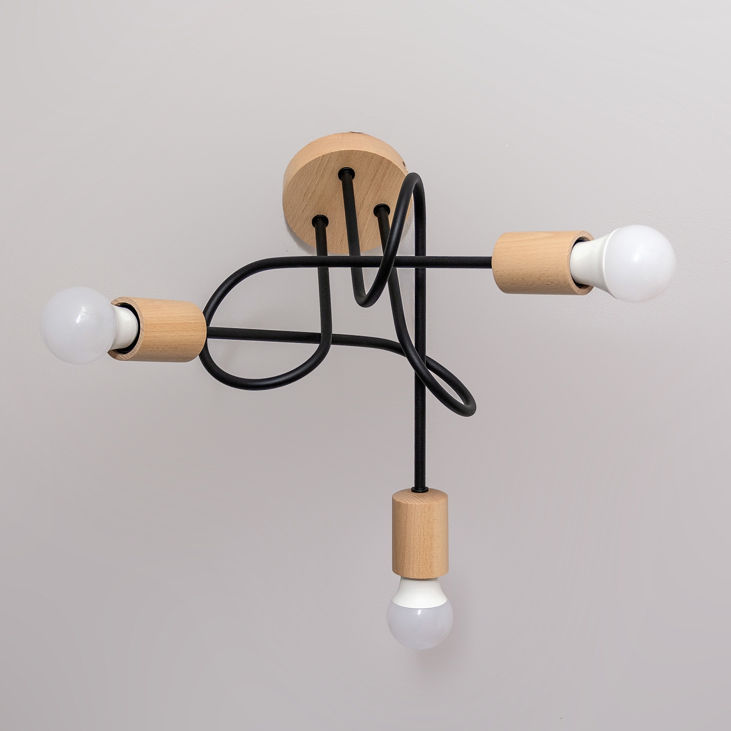 Lustre de tecto de sobrepor OXFORD 3xE27/15W/230V pinho/preto caracteriza-se por um design agradável e funcional.  Uma lâmpada com casquilho E27 é adequada para a iluminação Aqui, pode comprar outras lâmpadas a preços vantajosos. Terá um complemento interessante para a sua casa.