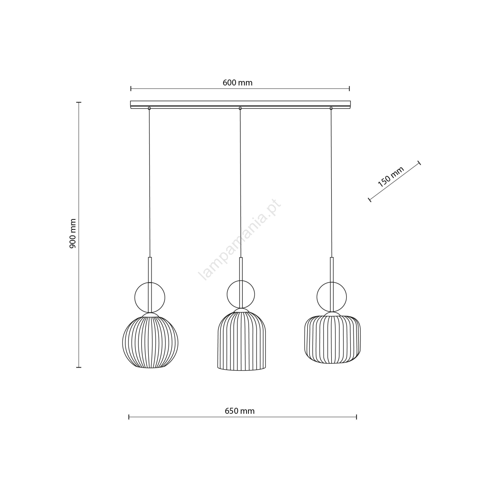 • Lustre em cabo SOPHIA 3xE14/10W/230V preto/bege fumê