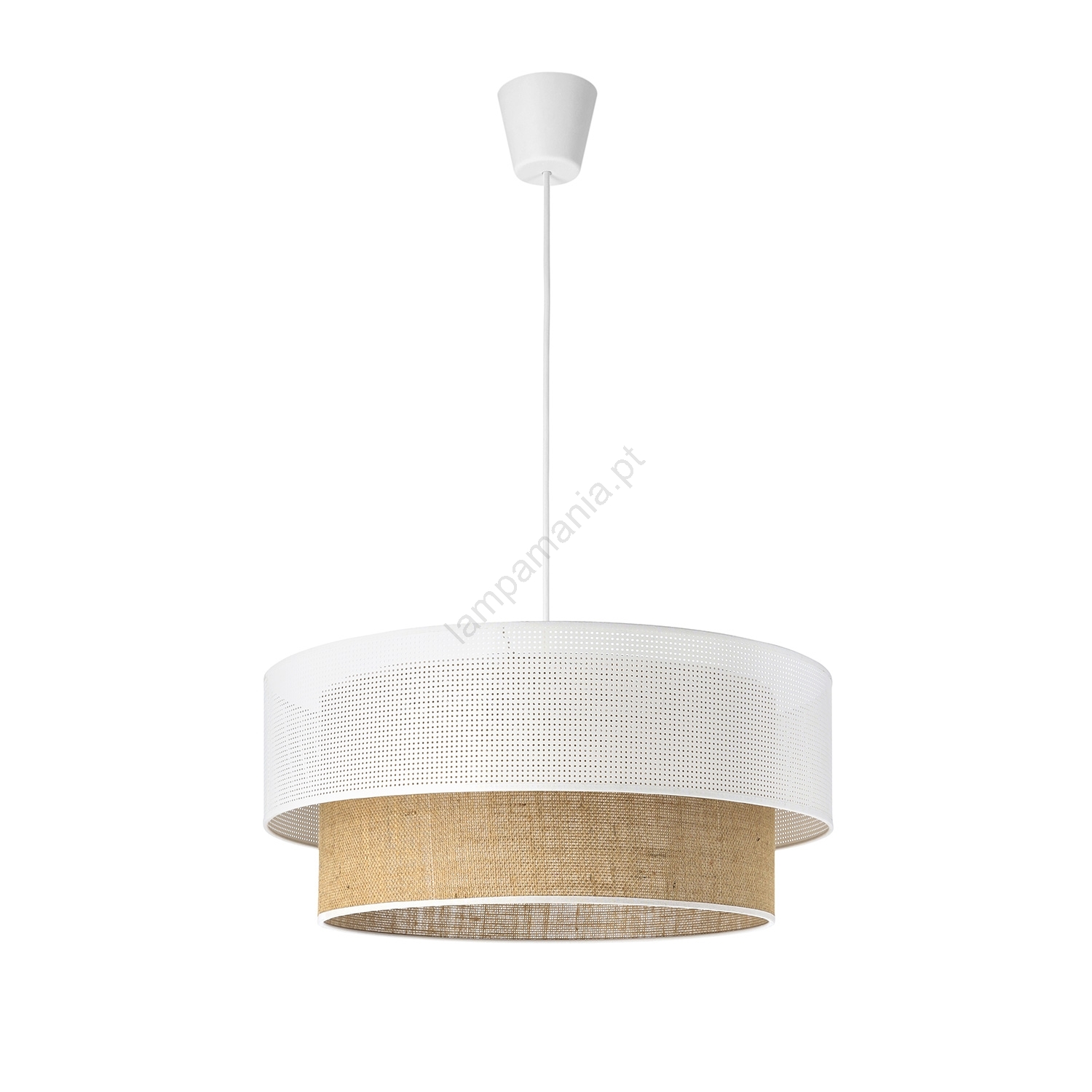 Lustre pendente com cabo BORHO 1xE27/60W/230V Ø 50 cm branco/juta caracteriza-se por um design agradável e funcional.  Uma lâmpada com casquilho E27 é adequada para a iluminação Aqui, pode comprar outras lâmpadas a preços vantajosos. Terá um complemento interessante para a sua casa.