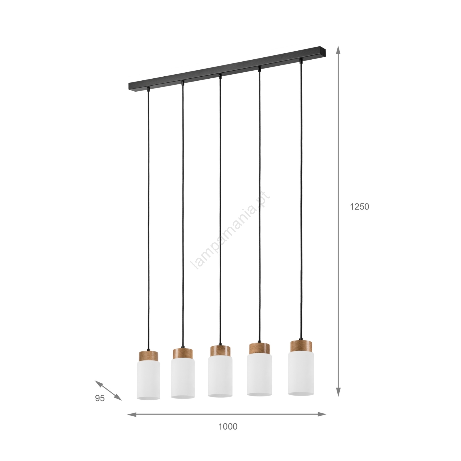 Lustre suspenso por cabo MARKUS 5xE27/15W/230V preto/carvalho caracteriza-se por um design agradável e funcional.  Uma lâmpada com casquilho E27 é adequada para a iluminação Aqui, pode comprar outras lâmpadas a preços vantajosos. Terá um complemento interessante para a sua casa.