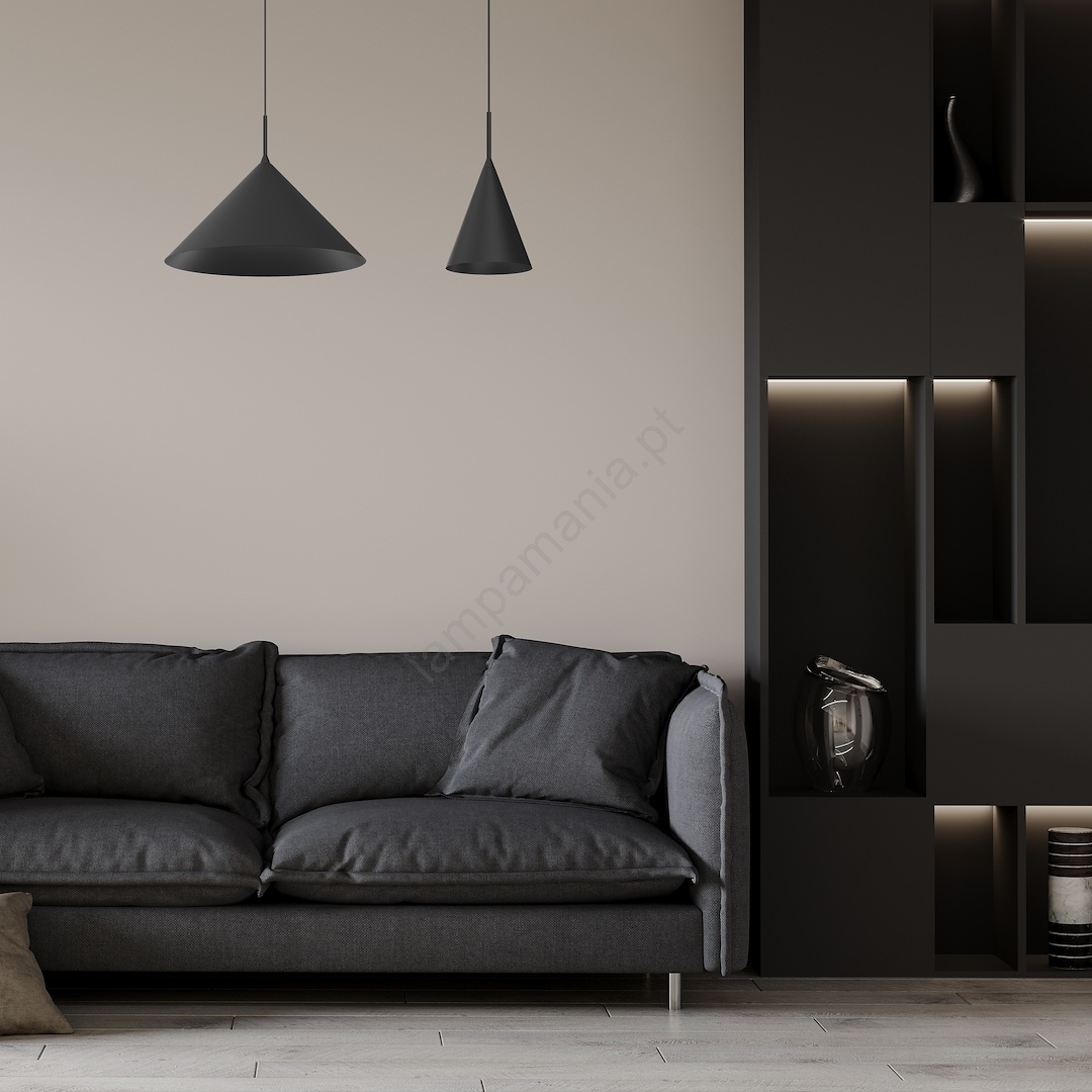 Lustre suspenso com cabo CAPITAL 1xGX53/15W/230V, Ø 46 cm, preto caracteriza-se por um design agradável e funcional.  Uma lâmpada com casquilho GX53 é adequada para a iluminação Aqui, pode comprar outras lâmpadas a preços vantajosos. Terá um complemento interessante para a sua casa.