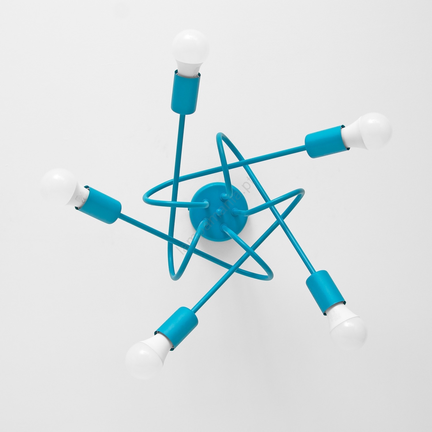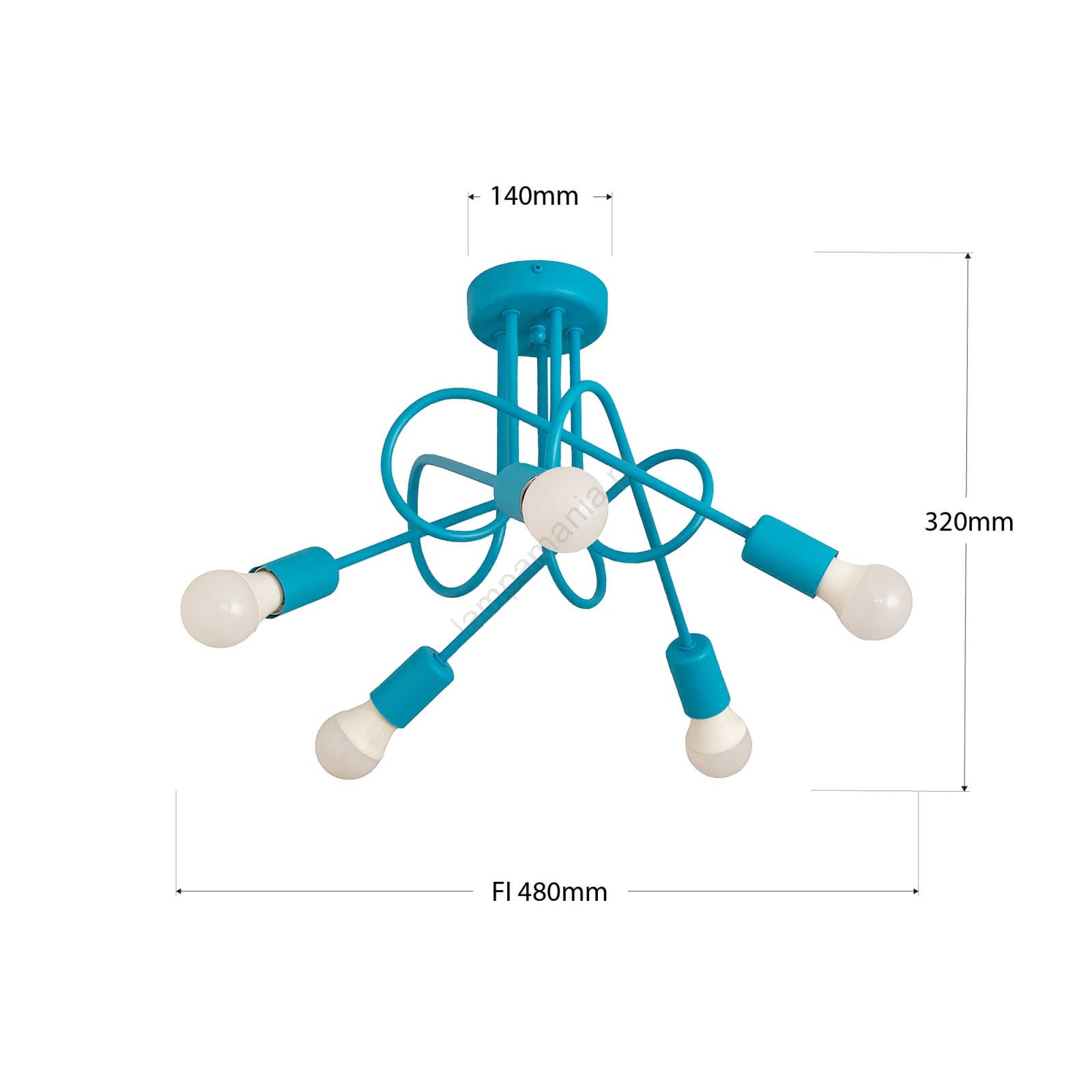 Lustre de teto infantil OXFORD 5xE27/15W/230V azul caracteriza-se por um design agradável e funcional.  Uma lâmpada com casquilho E27 é adequada para a iluminação Aqui, pode comprar outras lâmpadas a preços vantajosos. Terá um complemento interessante para a sua casa.