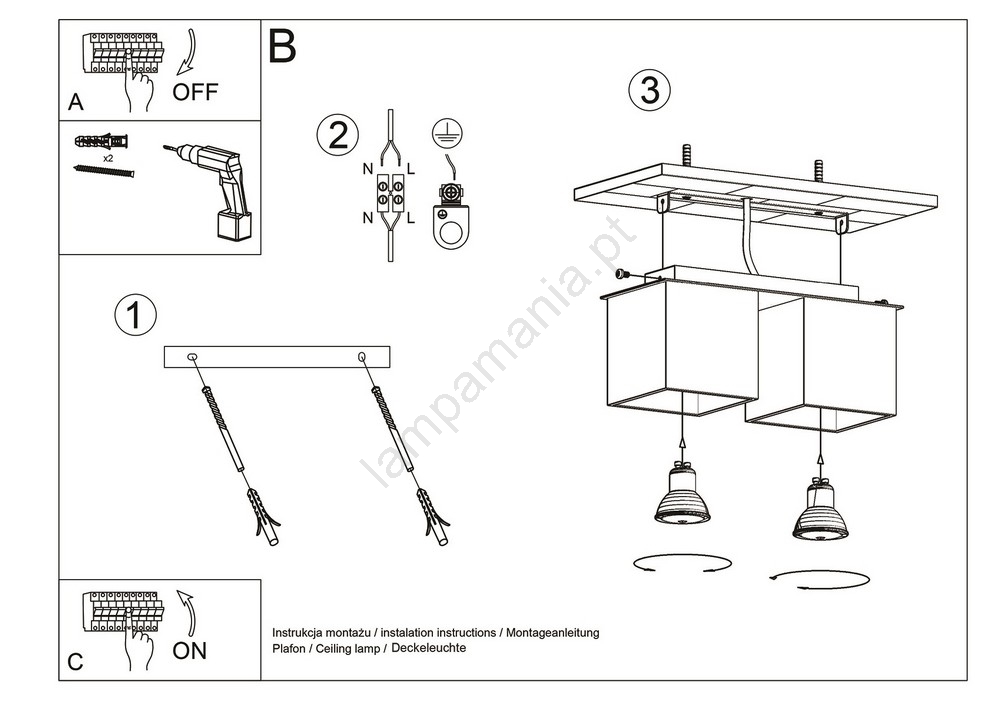 • Foco QUAD 2 2xGU10/40W/230V preto