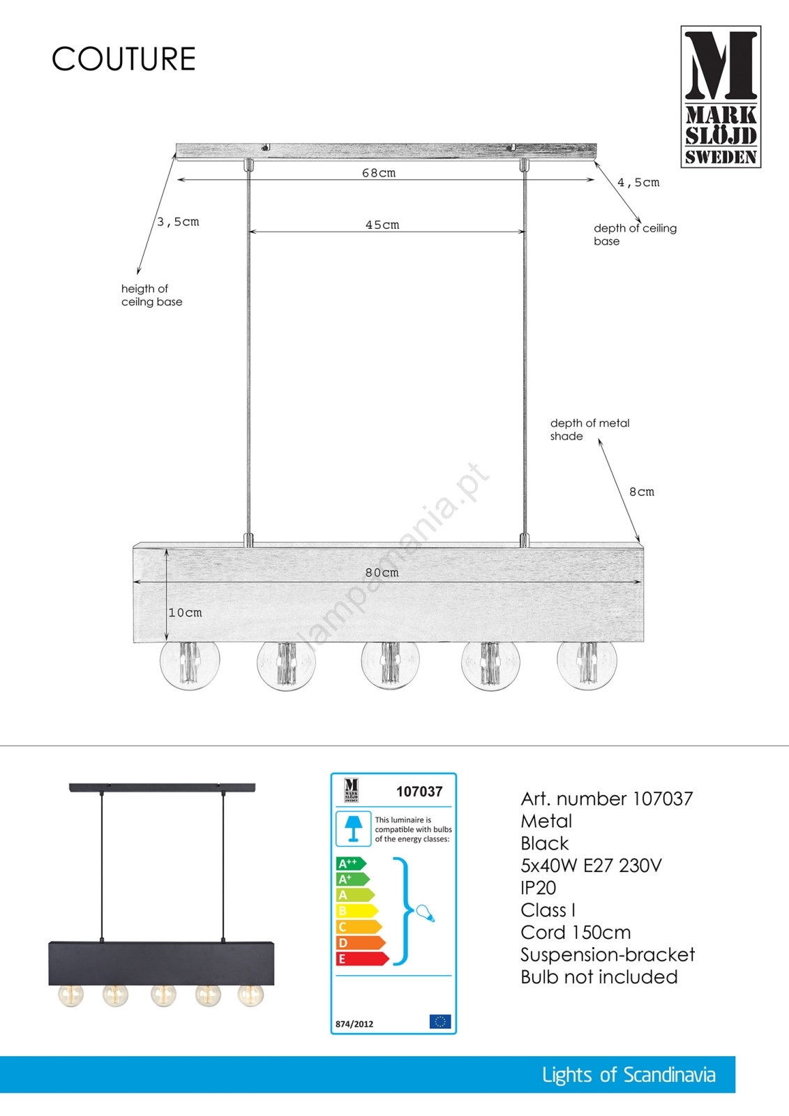 Candelabros, Candelabros, Candelabros de cozinha, Iluminação interior, Iluminações, Marcas, Markslöjd, Por divisão, Sala de estar e quarto