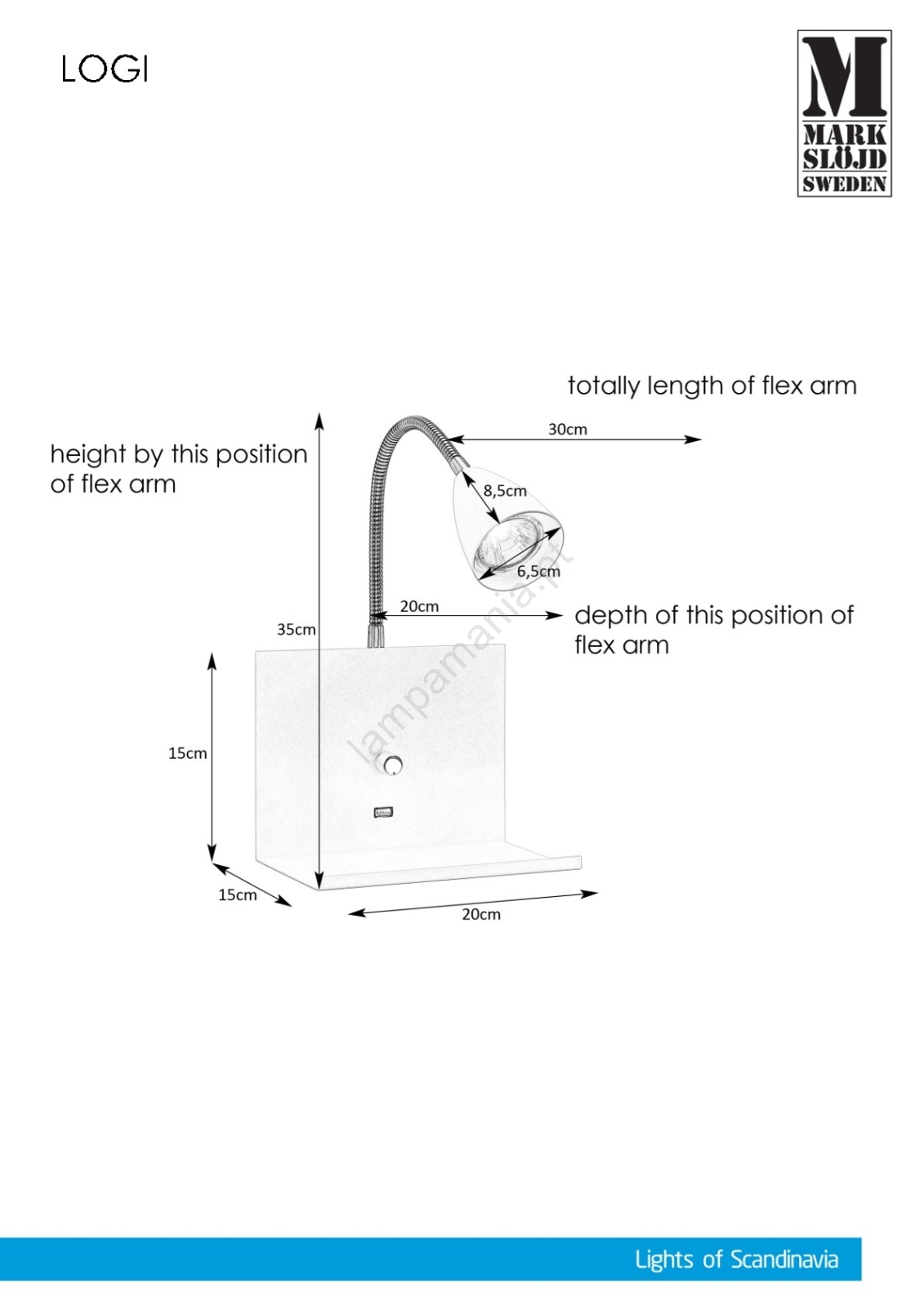 • Markslöjd 107140 - Luz da parede com regulação s USB zásuvkou LOGI 1xGU10/7W/230V