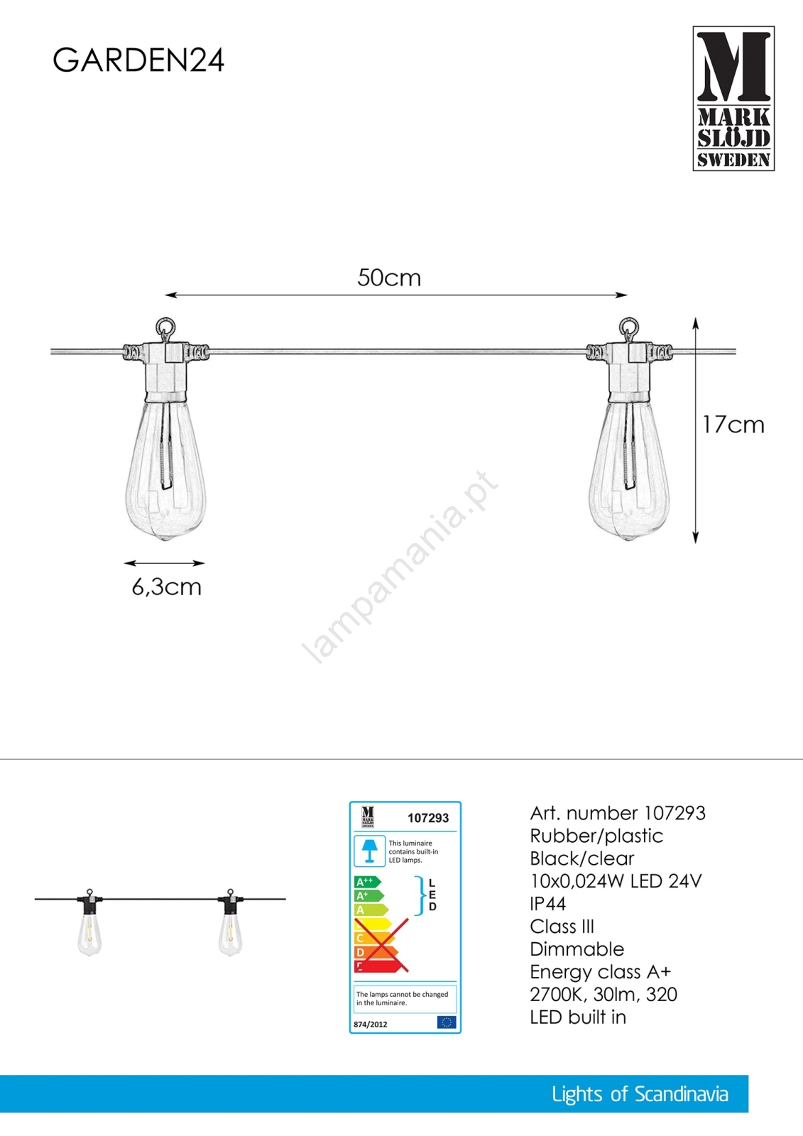 Markslöjd 107293 - Cordão decorativo LED para exterior GIRLANDA GARDEN 10xLED 5,5m IP44