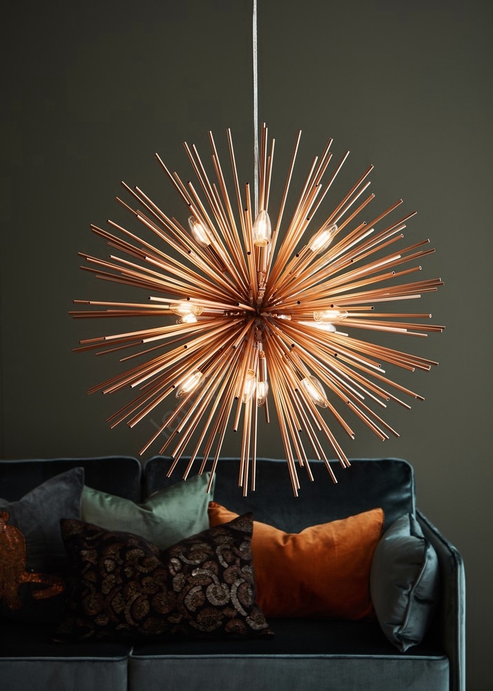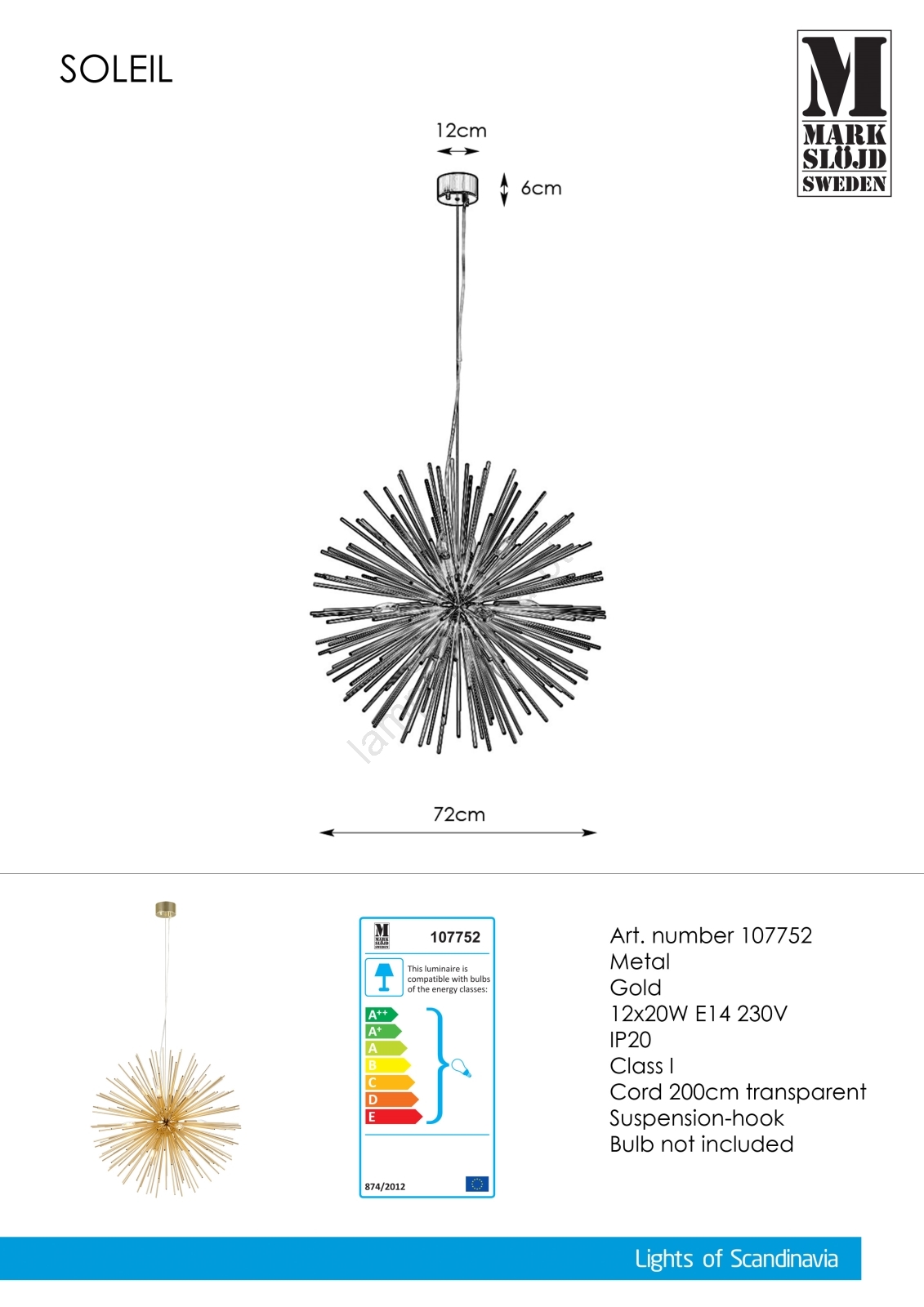 Markslöjd 107752 - Candeeiro suspenso SOLEIL 12xE14/20W/260V Rosa dourado caracteriza-se por um design agradável e funcional.  Uma lâmpada com casquilho E14 é adequada para a iluminação Aqui, pode comprar outras lâmpadas a preços vantajosos. Terá um complemento interessante para a sua casa.