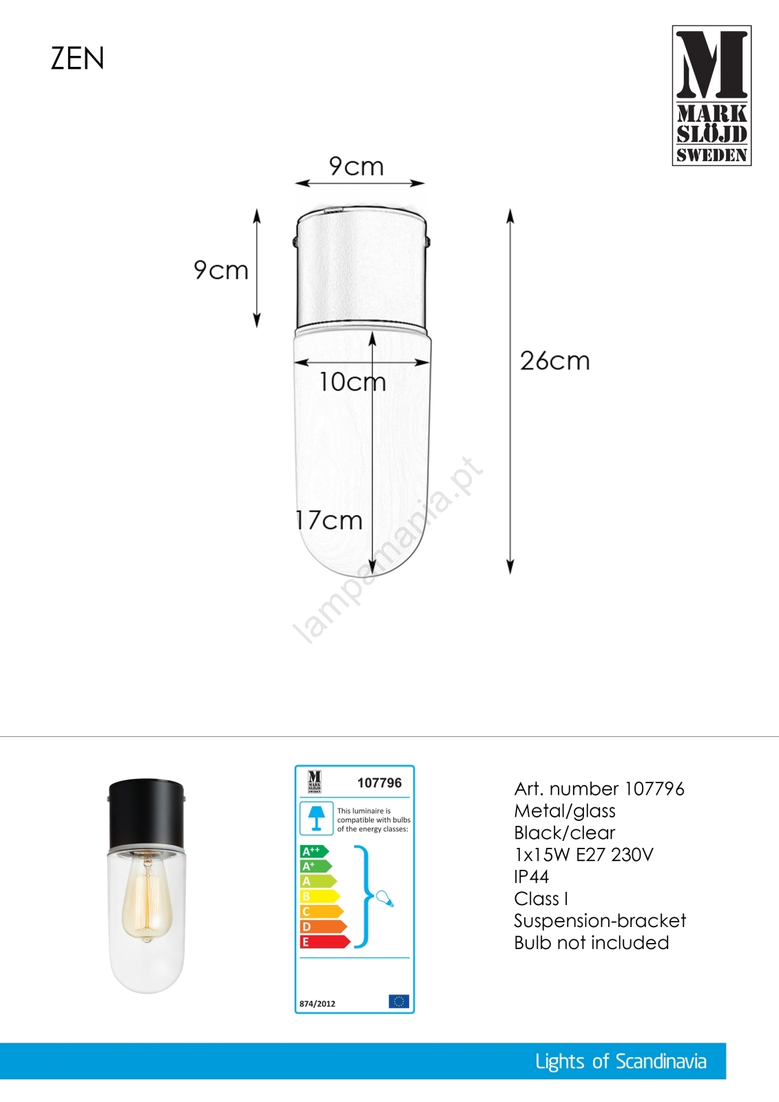 • Markslöjd 107796 - Luz de teto de casa de banho ZEN 1xE27/15W/230V IP44