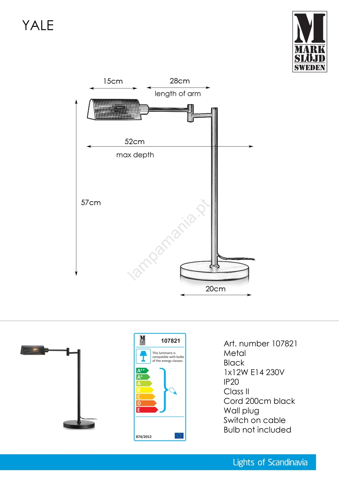 Markslöjd 107821 - Lâmpada de mesa YALE 1xE14/12W/230V