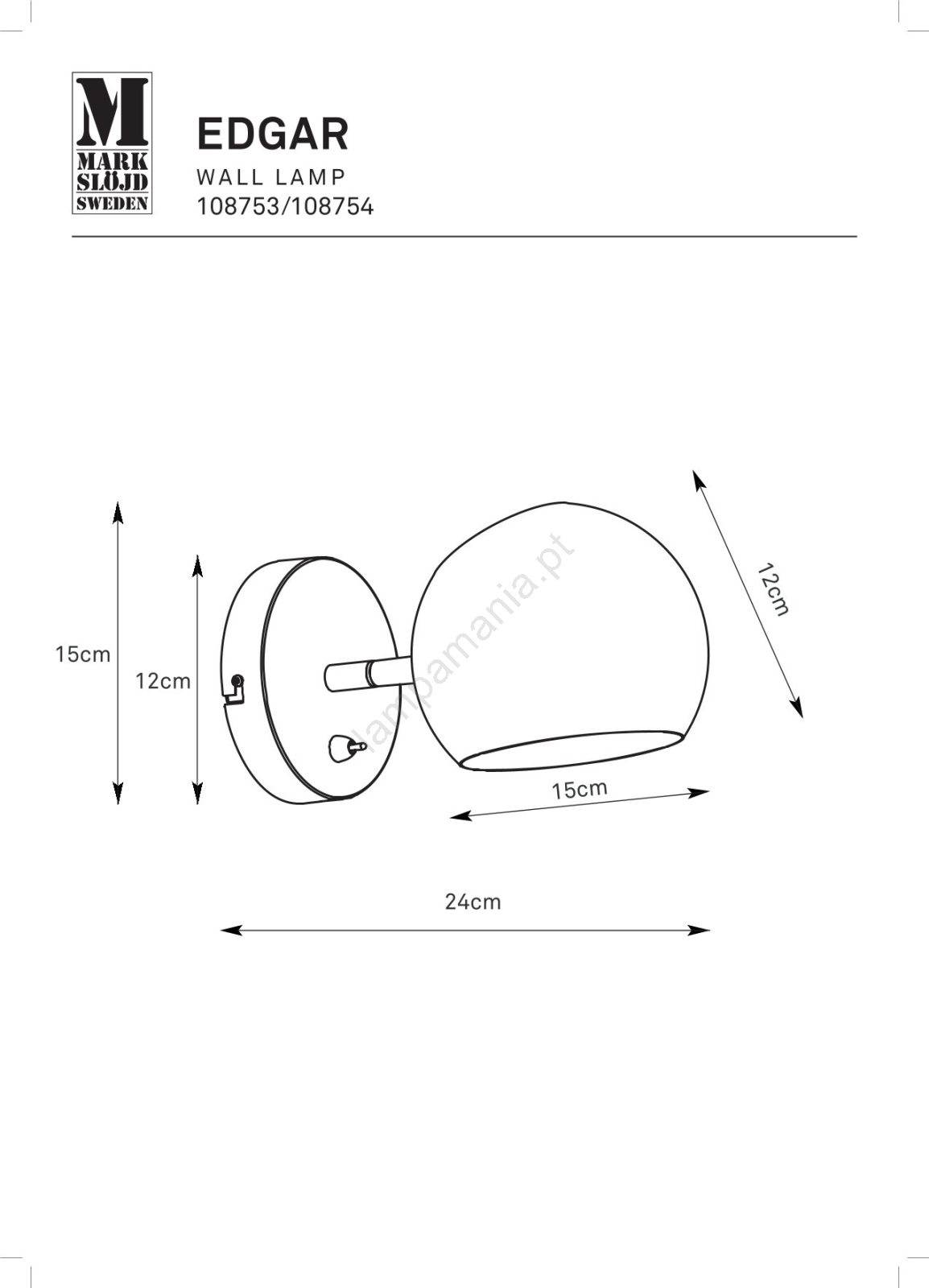 • Markslöjd 108754 - Candeeiro de parede EDGAR 1xE14/40W/230V dourado