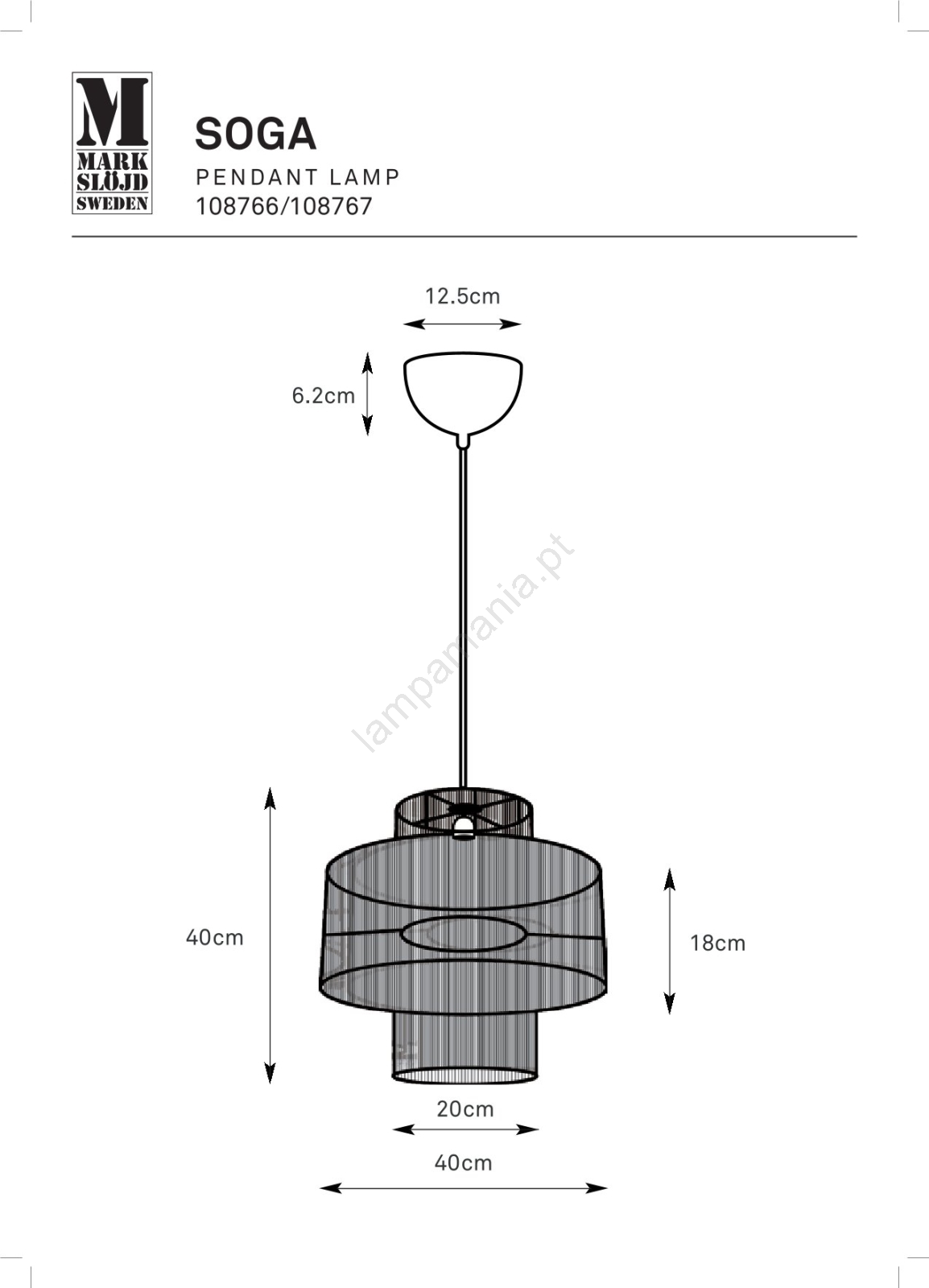 Markslöjd 108766 - Candeeiro suspenso SOGA 1xE27/40W/230V preto caracteriza-se por um design agradável e funcional.  Uma lâmpada com casquilho E27 é adequada para a iluminação Aqui, pode comprar outras lâmpadas a preços vantajosos. Terá um complemento interessante para a sua casa.
