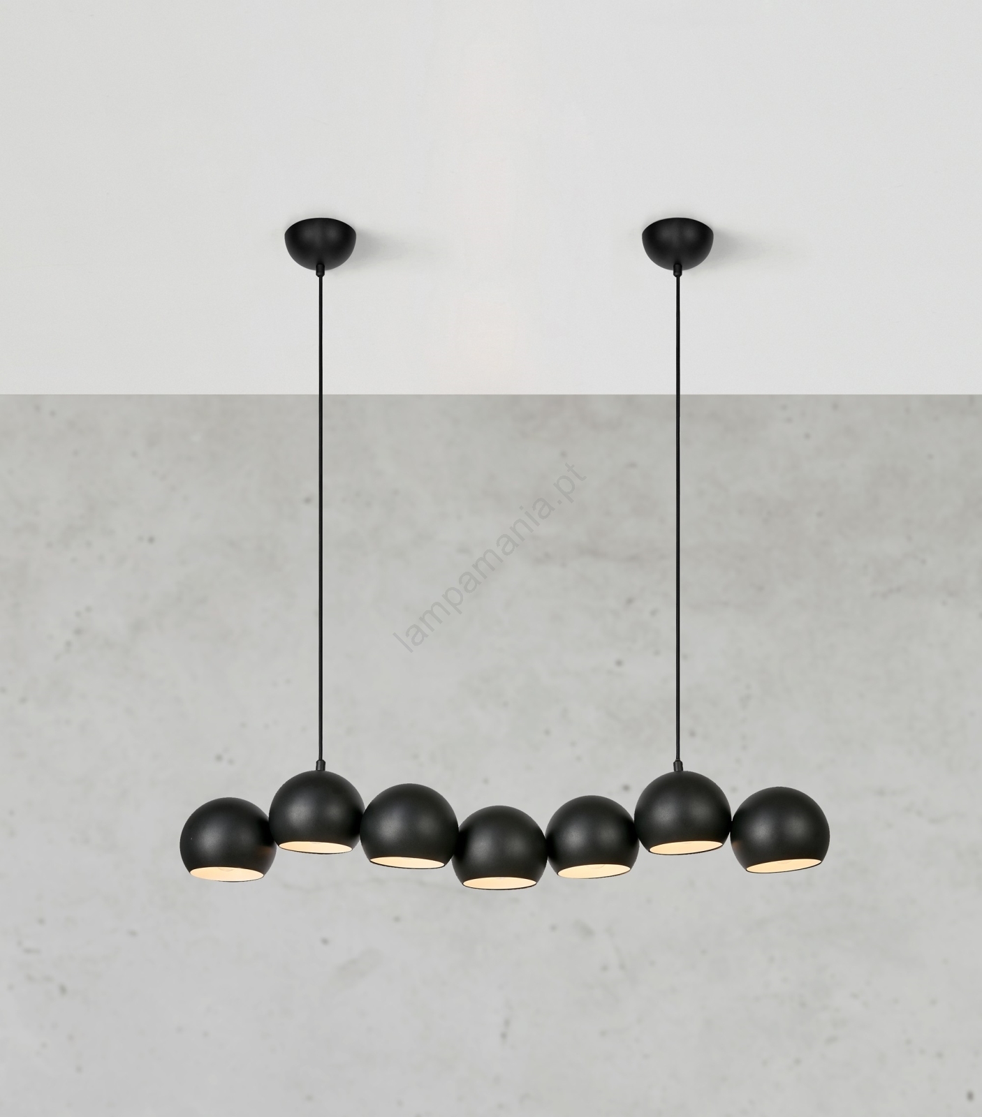 Markslöjd 108860 - Candeeiro suspenso CUPOLO 7xE14/40W/230V preto caracteriza-se por um design agradável e funcional.  Uma lâmpada com casquilho E14 é adequada para a iluminação Aqui, pode comprar outras lâmpadas a preços vantajosos. Terá um complemento interessante para a sua casa.