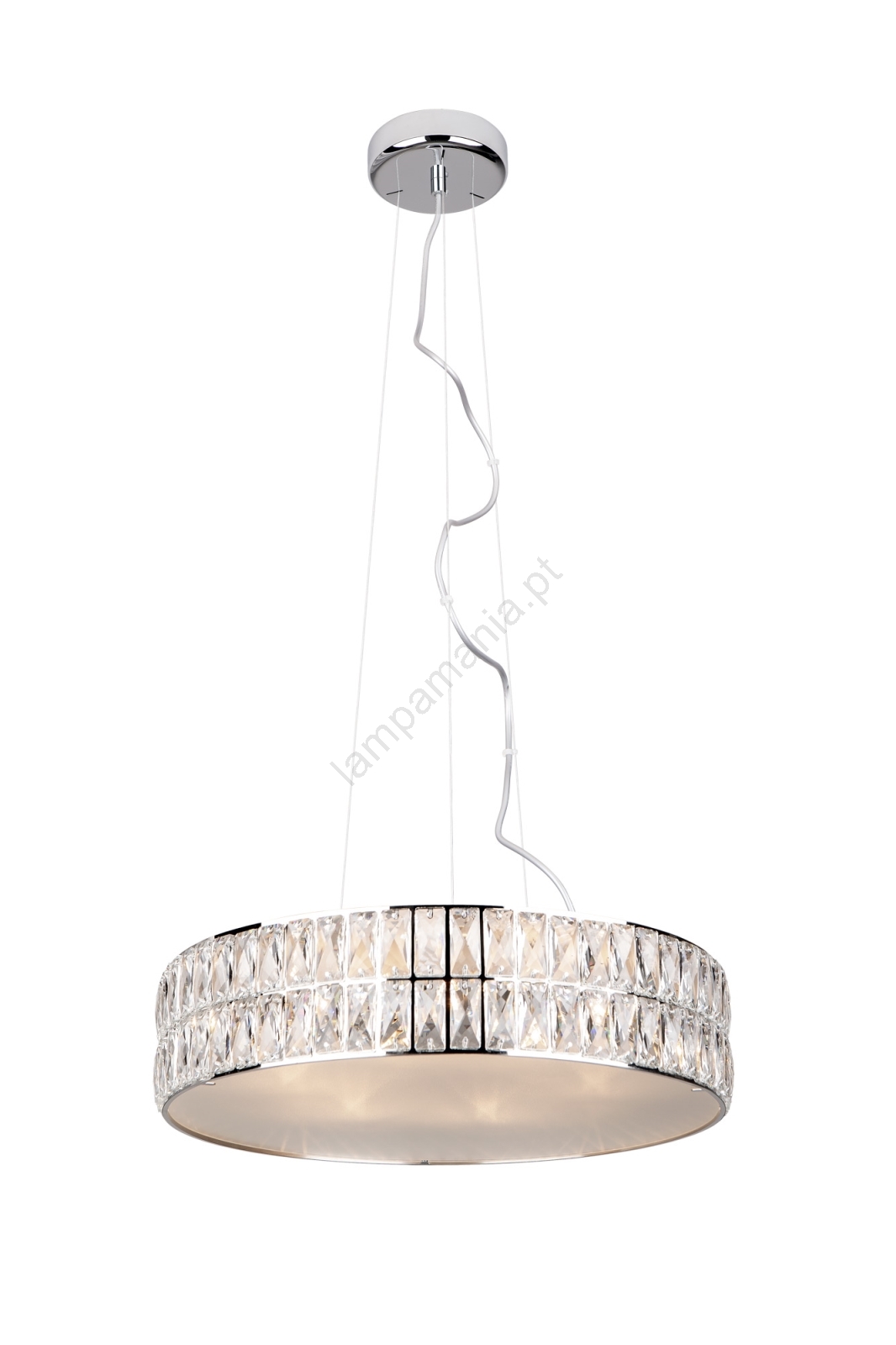 MAXLIGHT P0236 - Candeeiro suspenso DIAMANTE 5xG9/42W/230V diâmetro 38 cm cromado brilhante caracteriza-se por um design agradável e funcional.  Uma lâmpada com casquilho G9 é adequada para a iluminação Aqui, pode comprar outras lâmpadas a preços vantajosos. Terá um complemento interessante para a sua casa.