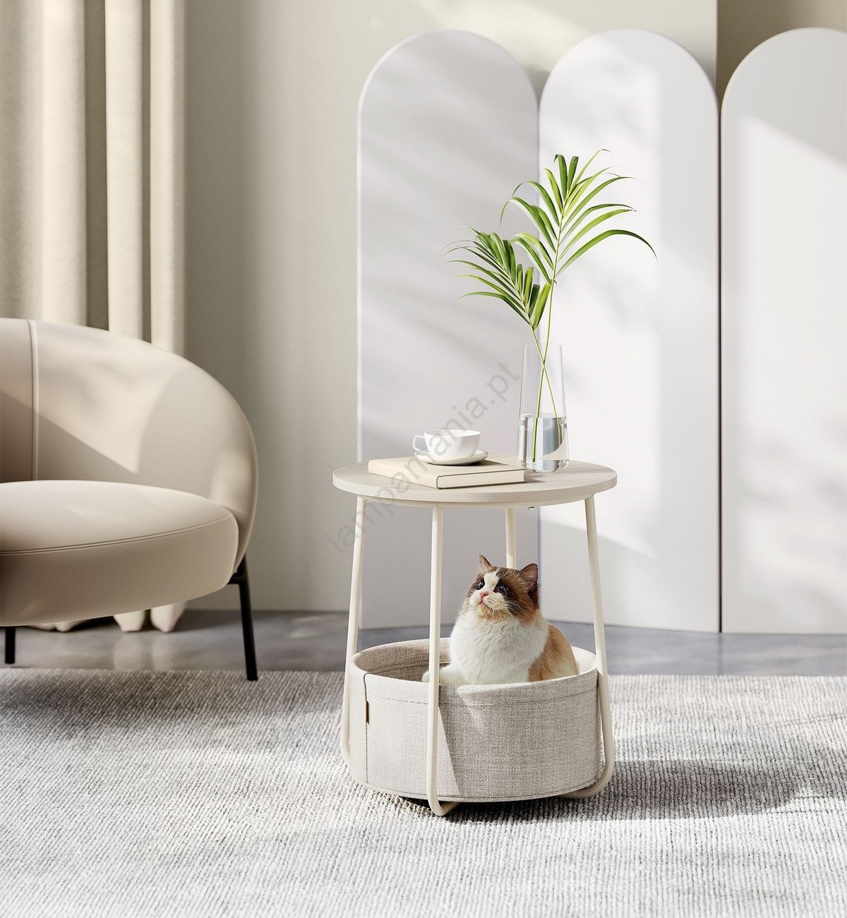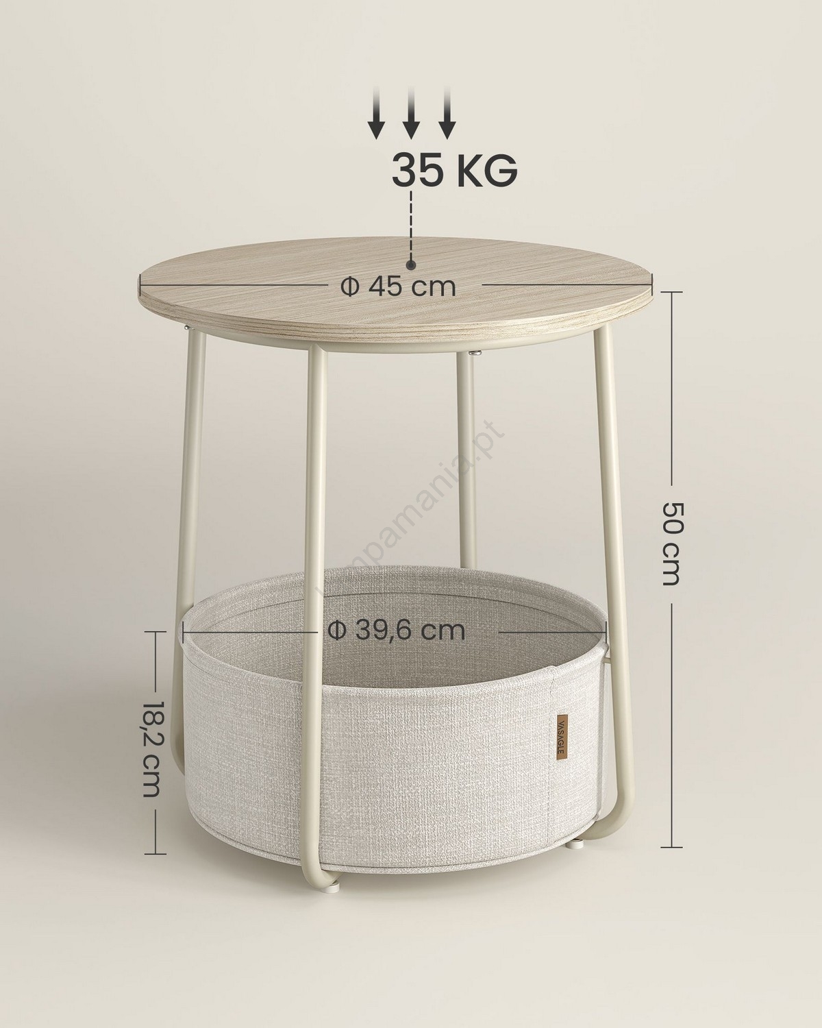 • Dispõe de um cesto em tecido na parte inferior com 18,2 cm de altura e 39,6 cm de diâmetro.