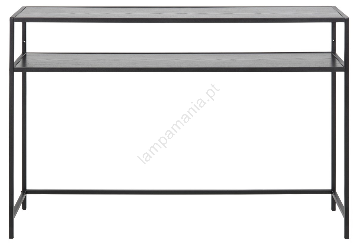 • Tampo e prateleira em melamina preta texturizada, base em aço preto fosco com pintura em pó texturizada.