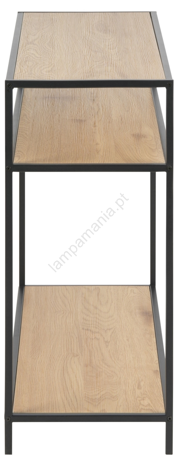 • Tampo e 2 prateleiras em craft fosco, base em aço preto fosco com pintura eletrostática texturizada.