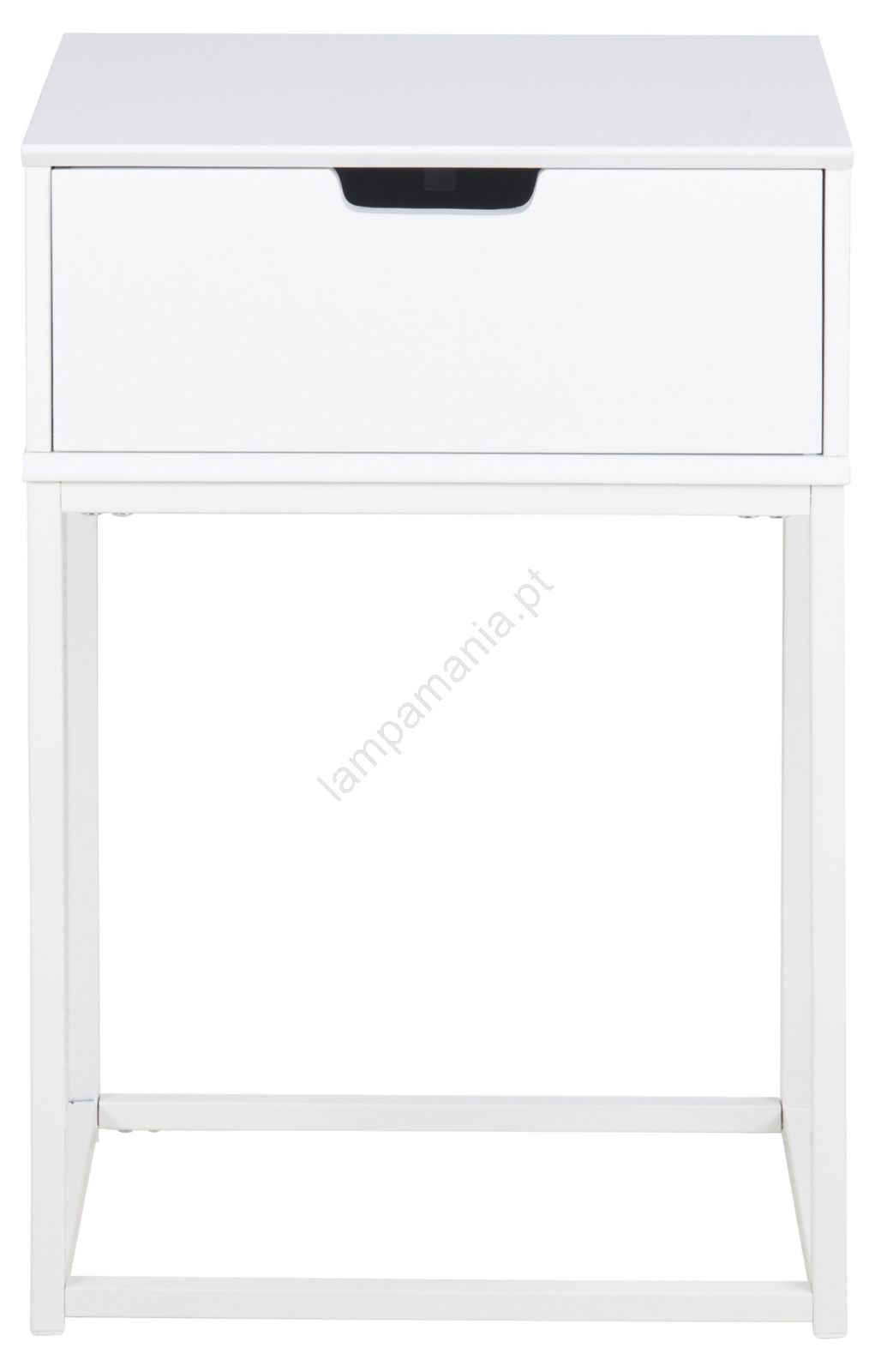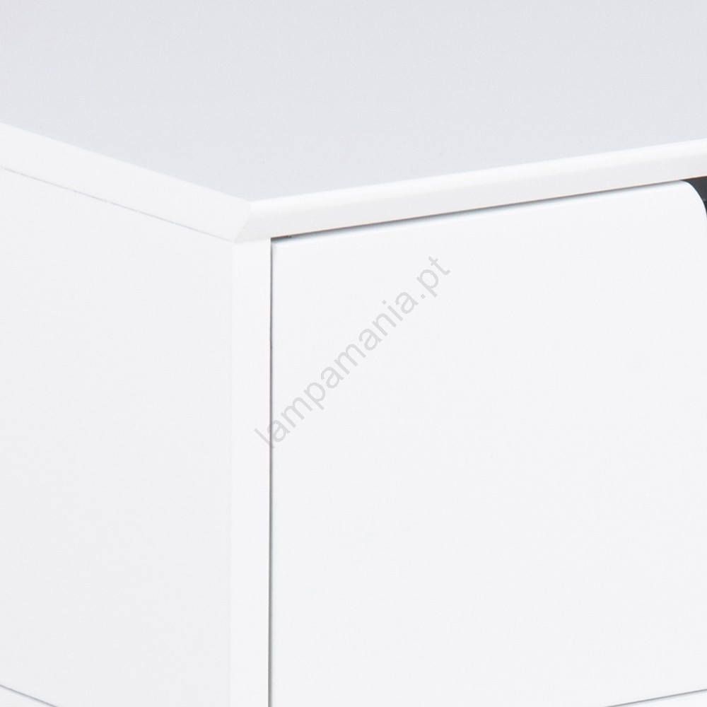• Tampo, estrutura e gaveta em MDF lacados com cura UV na cor branca, base em aço com pintura eletrostática a pó branca.