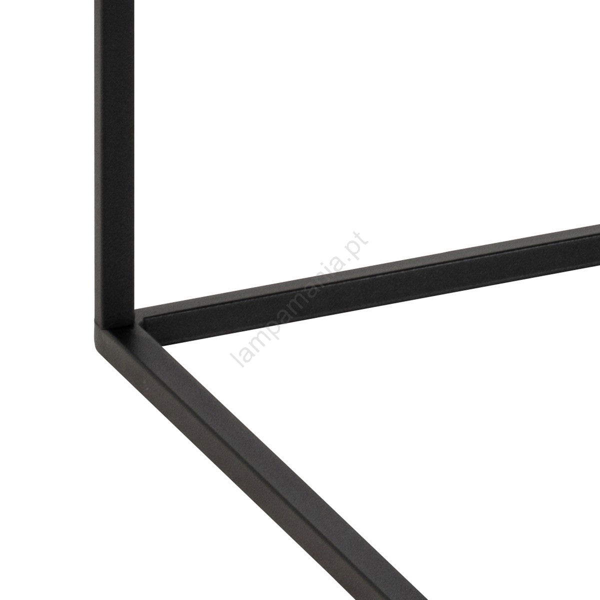 • Tampo em mármore preto Marquina em melamina de textura áspera, base em aço pintado a pó preto fosco com acabamento texturizado.