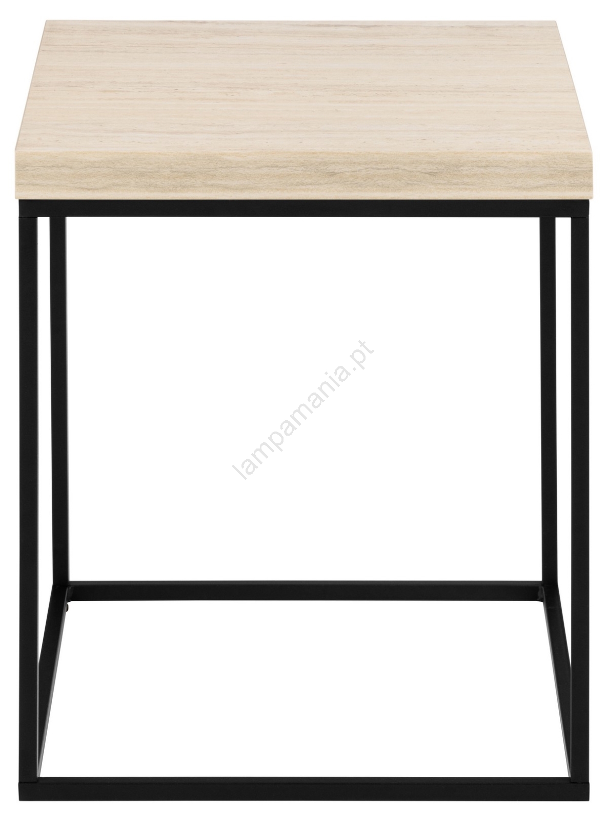 • Tampo em travertino com acabamento melamínico rústico, base em aço preto fosco com pintura em pó texturizada.