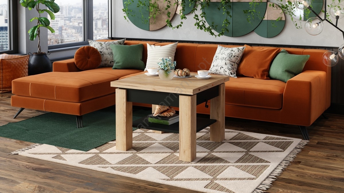 Mesa convertível de centro/jantar com tampo elevatório CALEB carvalho craft/preto
