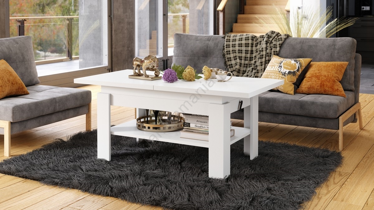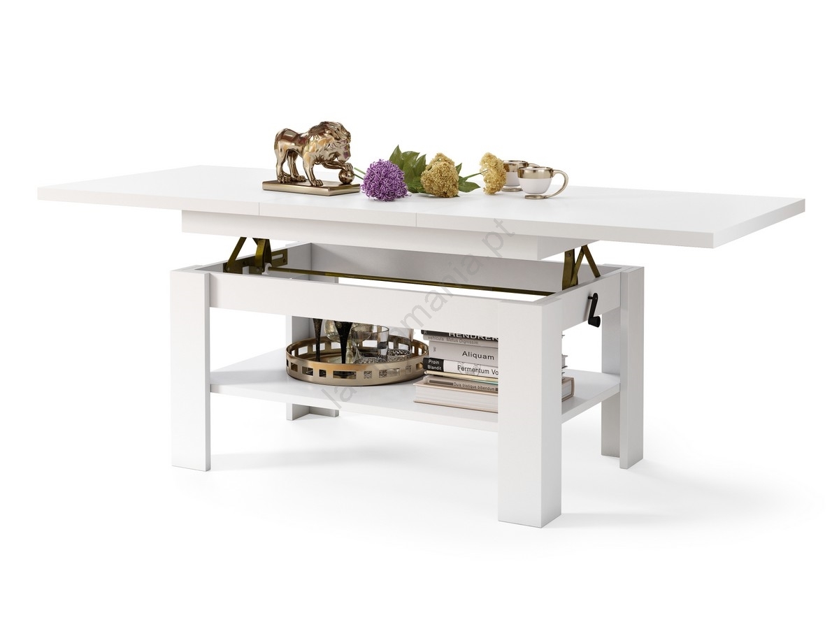 Mesa extensível de centro/jantar com tampo elevatório ROY branca