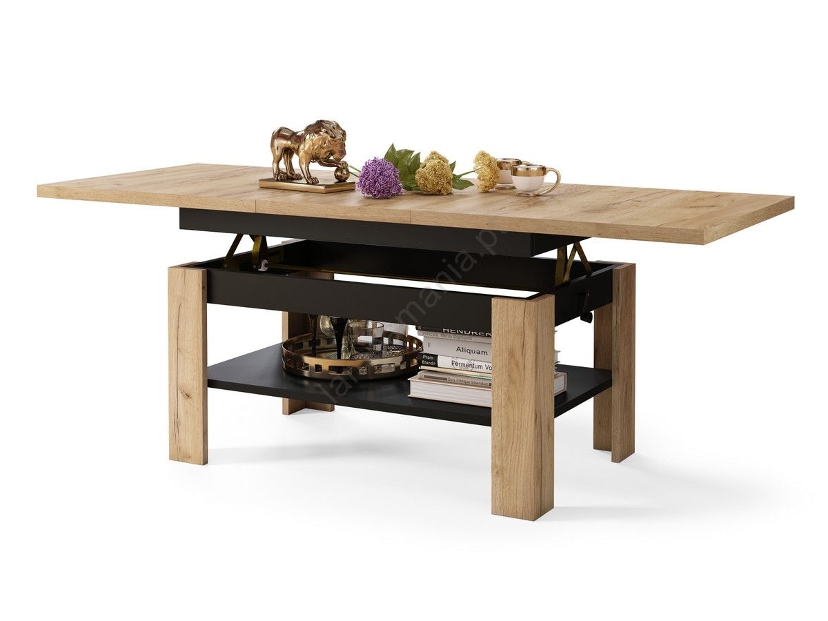 • Mesa de centro/jantar extensível com tampo elevatório ROY carvalho craft/preto