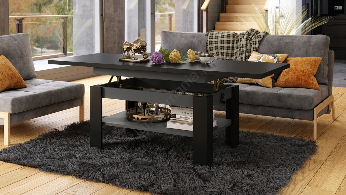 • Mesa extensível de centro e de jantar ROY com tampo elevatório — preta