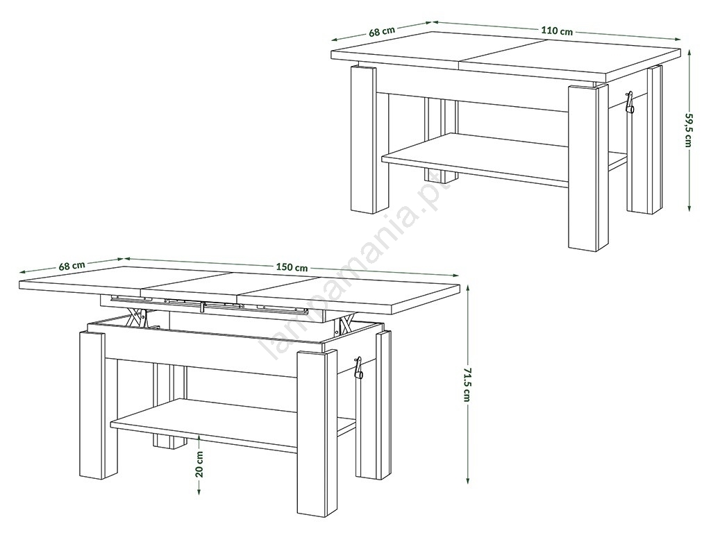 • Guias sincronizadas de alta qualidade garantem a elevação do tampo de forma suave e fácil, enquanto a sua espessura adequada e as pernas estáveis asseguram estabilidade e resistência a cargas elevadas.