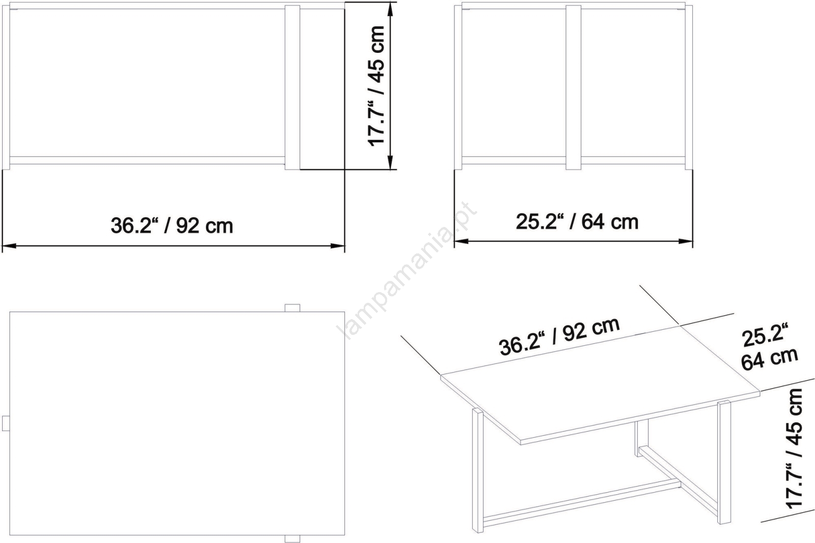 Mesa de centro MERIDETHS 45x92 cm castanho/preto