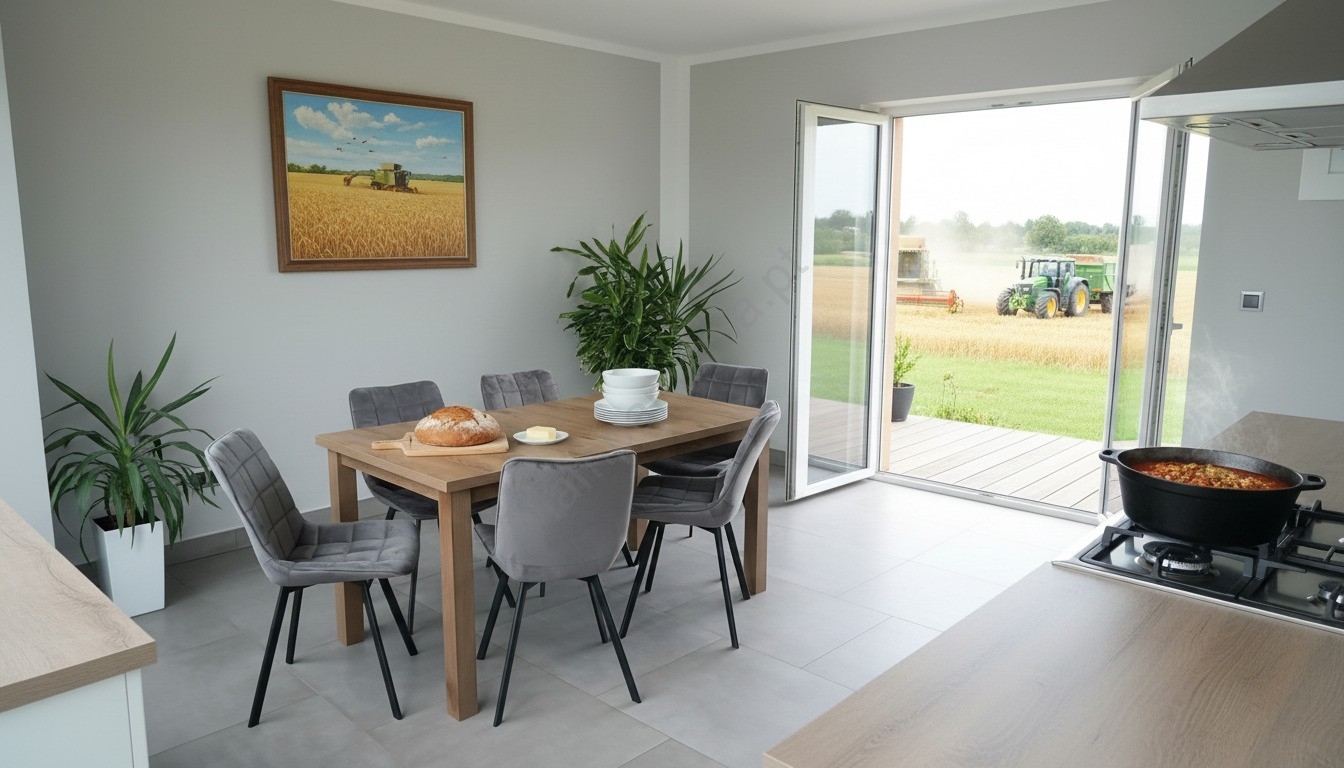 • O acabamento em carvalho confere à mesa de jantar um visual moderno e acolhedor.