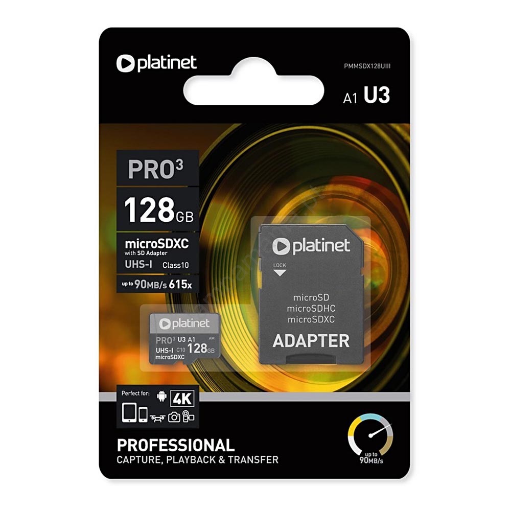 MicroSDXC 128GB U3 Pro A1 90MB/s + Adaptador SD
