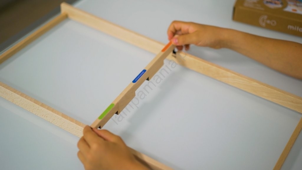 • Conteúdo da embalagem: 1 tabuleiro (61 x 31 cm) para montar com 7 peças de madeira de faia, 2 estilingues, 12 discos de madeira de faia em 3 cores, 1 saco de algodão, 10 almofadas antiderrapantes, manual em 6 idiomas.