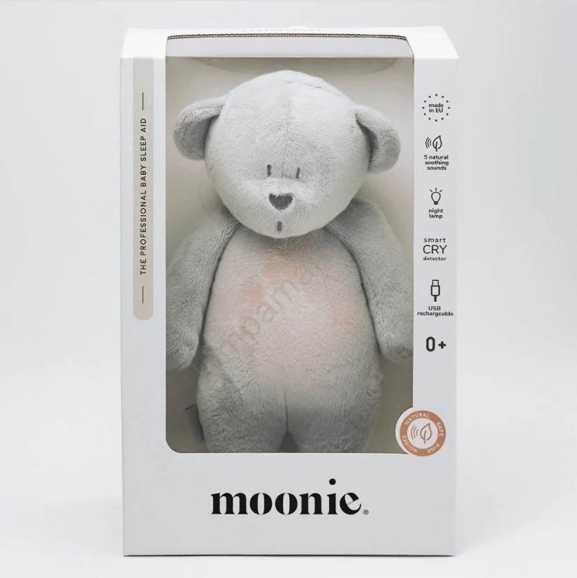 • O ursinho de peluche Moonie, com uma luz de presença e sons relaxantes, ajuda o bebé a acalmar-se e a adormecer mais facilmente.