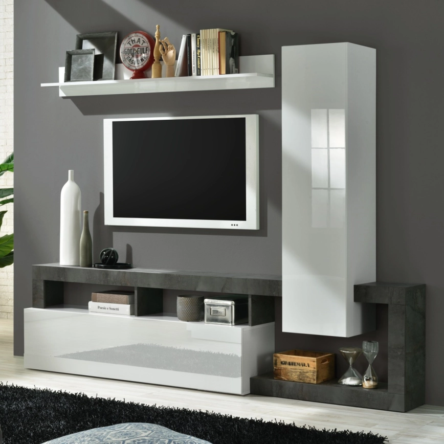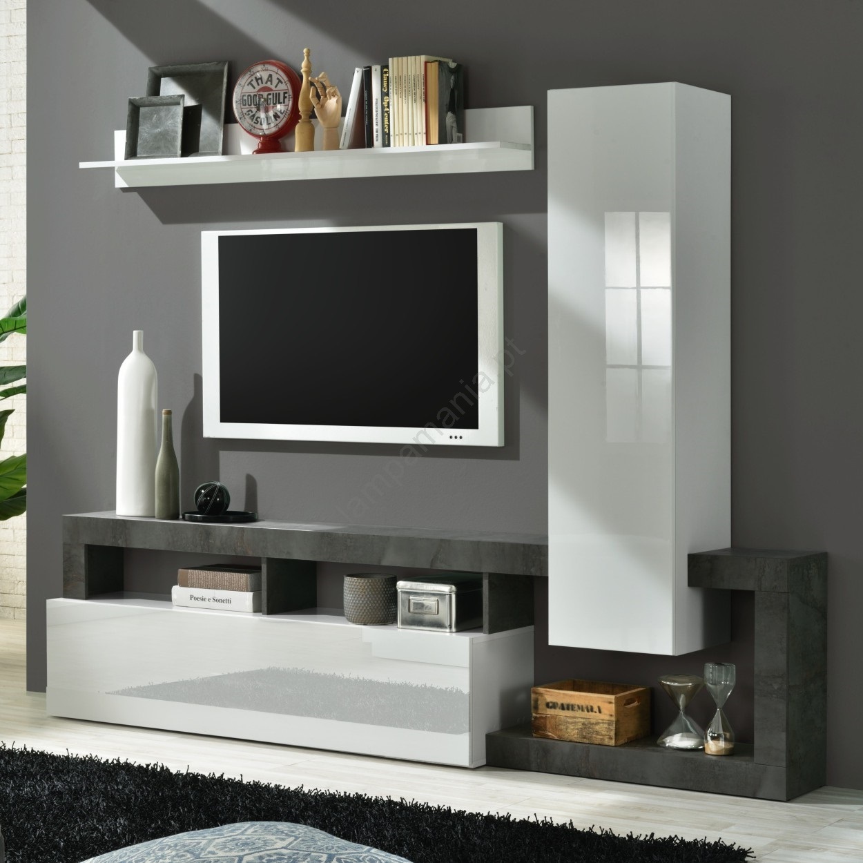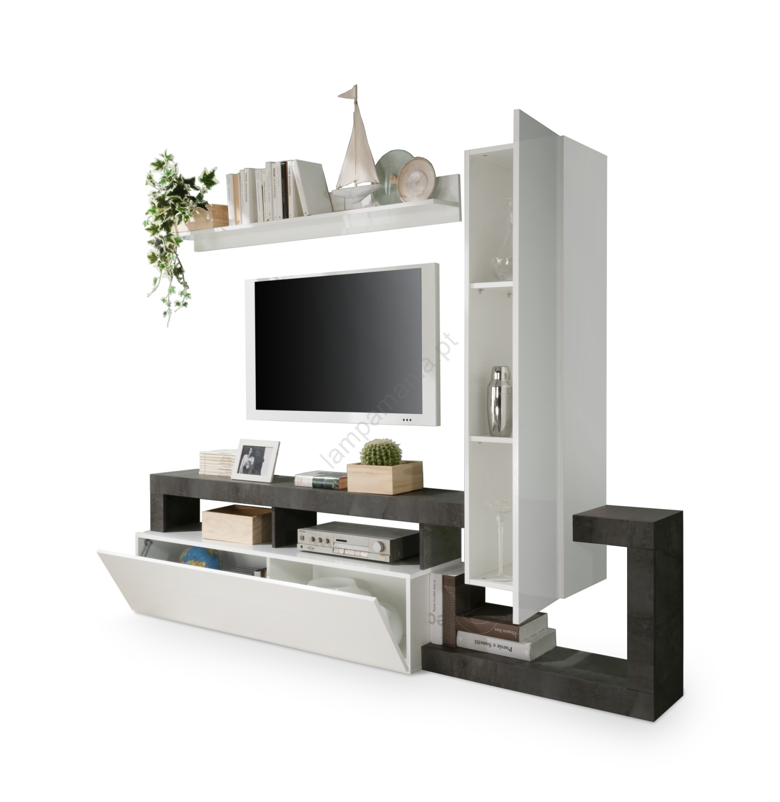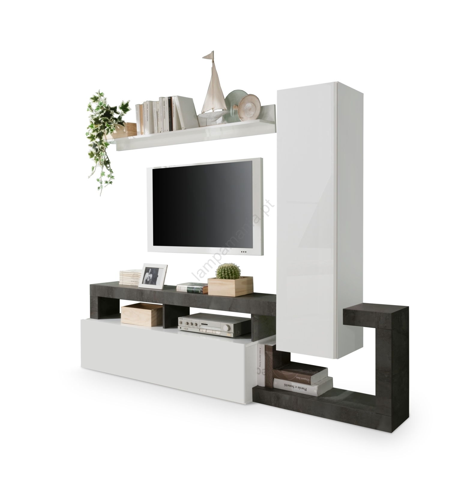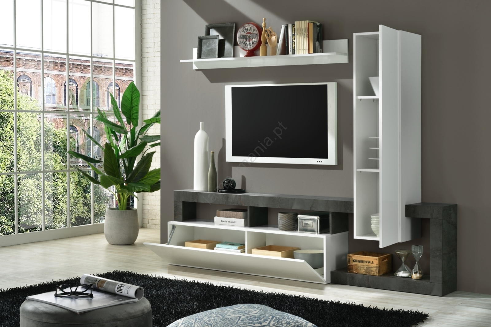 • Móvel de parede LENOR branco/cinzento com acabamento betão