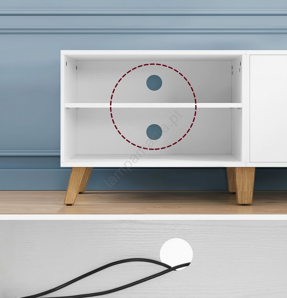 • Na parte traseira há aberturas para passagem de cabos, permitindo uma organização fácil e limpa.