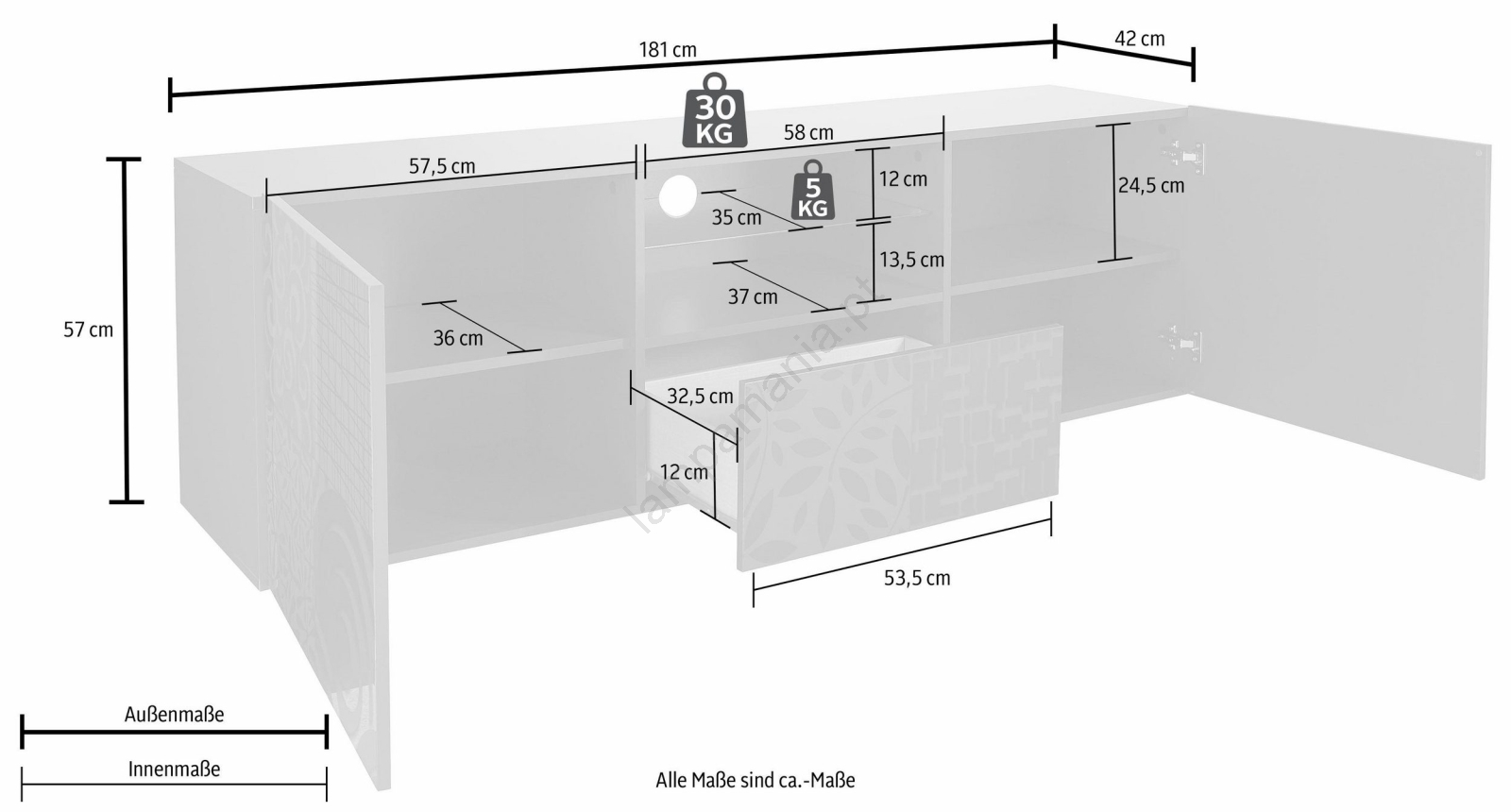 • Caixa n.º 1: 5,4 x 190,3 x 44,8 cm (18 kg).