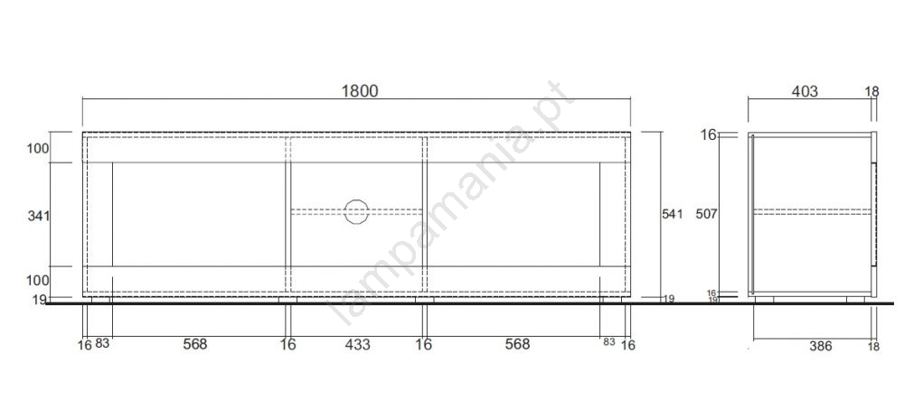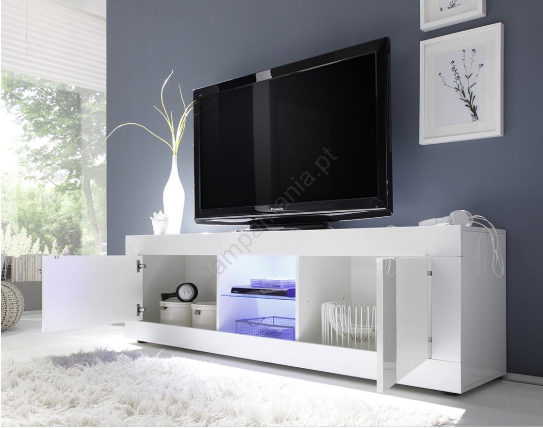 • Graças à sua forma retangular alongada, é ideal para colocar sob uma TV de parede ou como solução moderna de arrumação para a sala de estar.