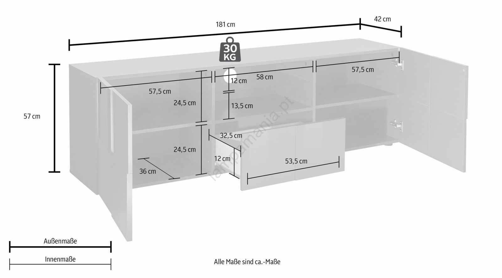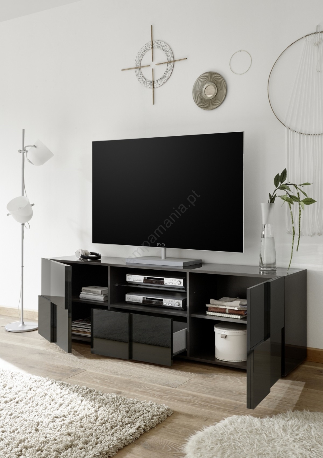 • Graças à sua forma retangular alongada, é ideal para colocar sob uma TV de parede ou como solução de arrumação moderna na sala de estar.