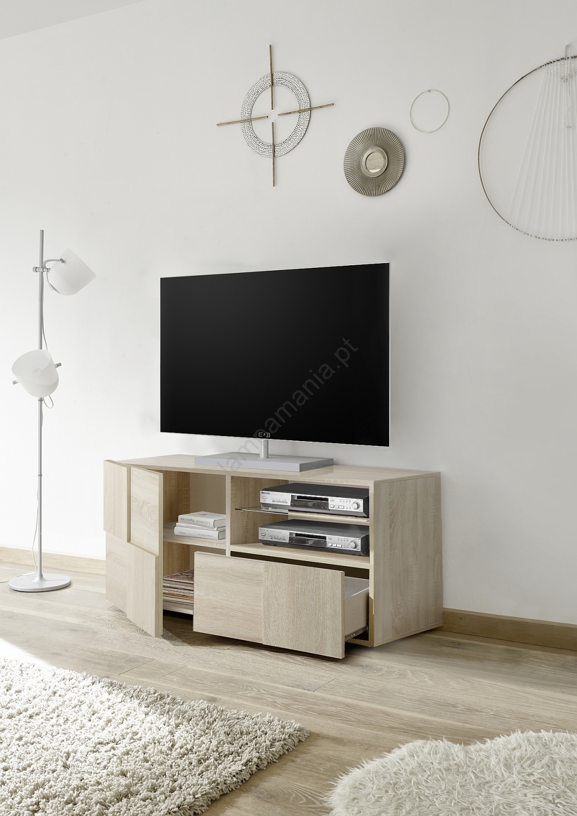 • Graças ao seu formato retangular e alongado, é ideal para colocar sob uma TV de parede ou como solução de arrumação moderna para a sala de estar.