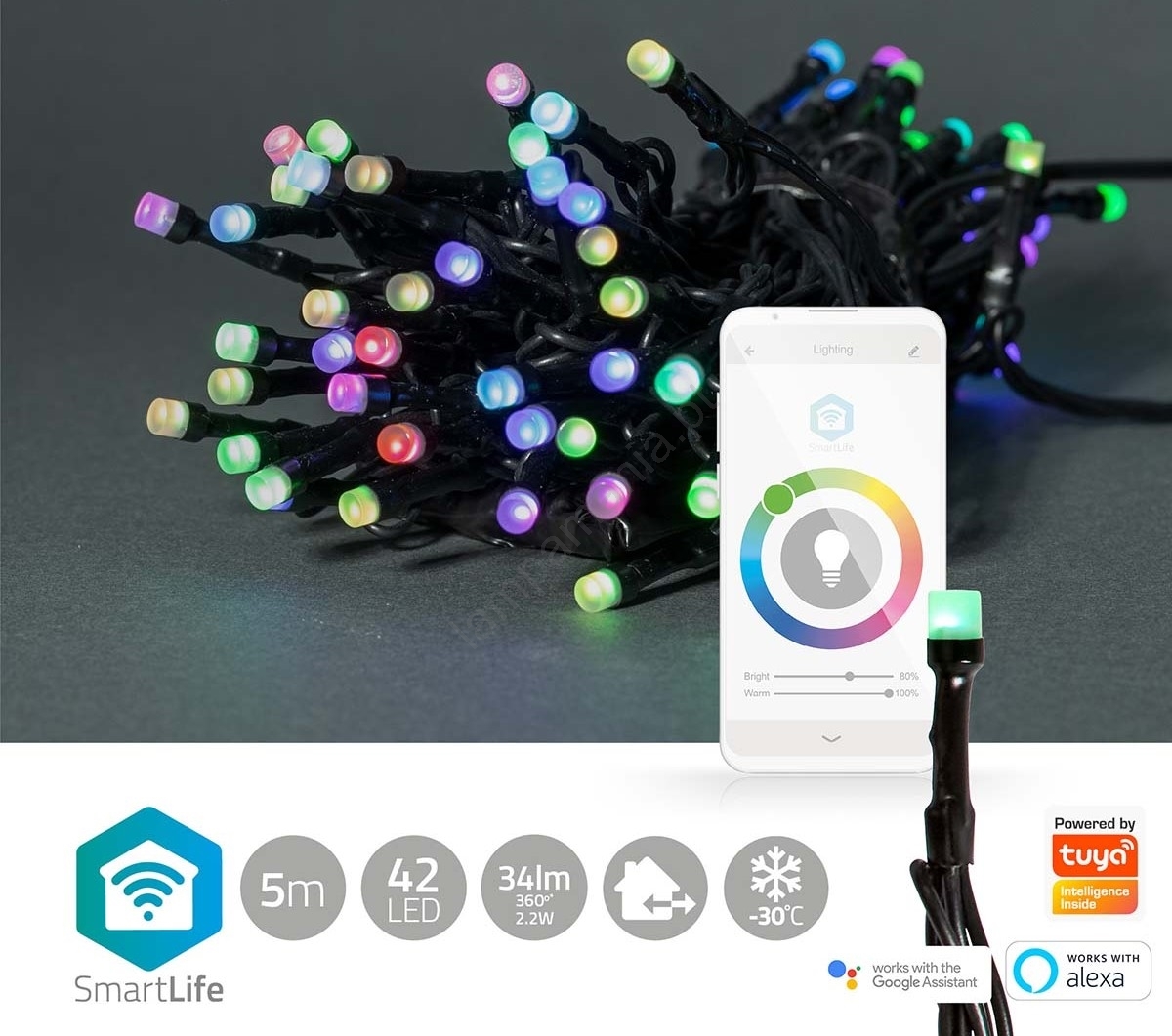 • Esta corrente Wi-Fi colorida e inteligente de 5 metros é fácil de usar e traz a tecnologia mais avançada para decorar a sua casa.