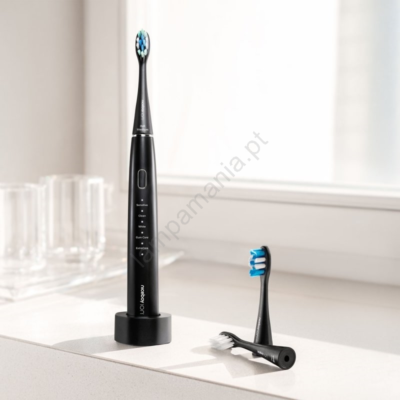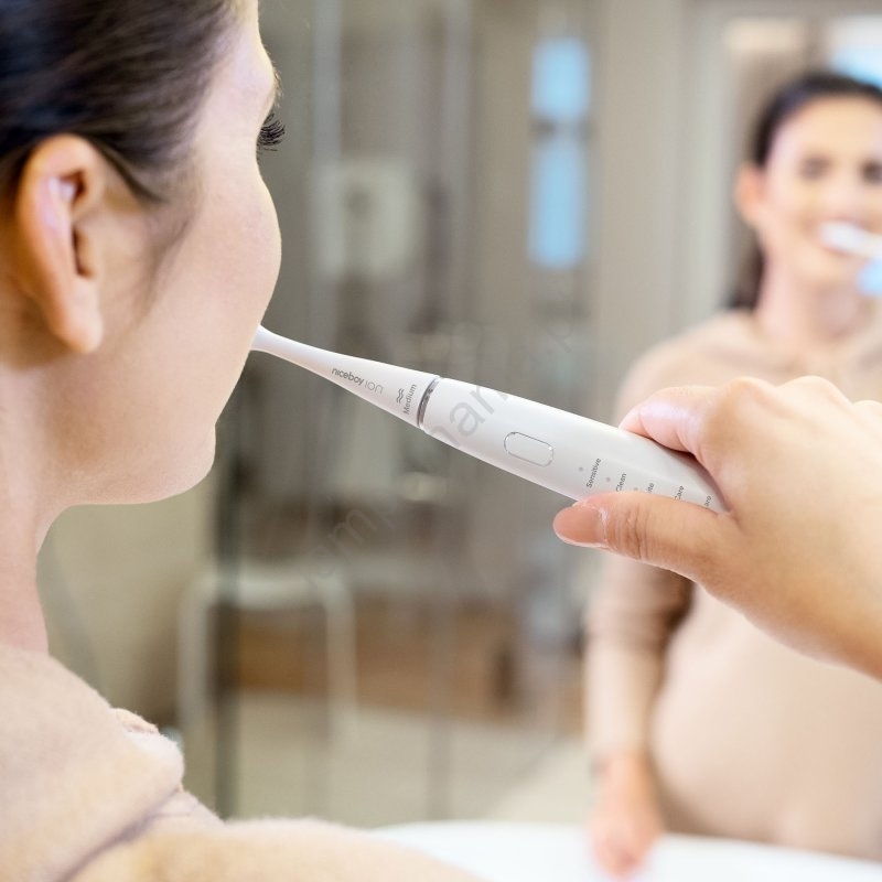 • O conjunto de duas escovas de alta frequência Niceboy ION Sonic cuida eficazmente do seu sorriso brilhante e branco.
