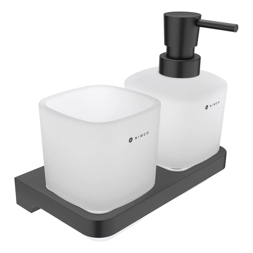NIMCO MAC 2905831C-T-90 - Distribuidor de sabão para parede e suporte para escova de dentes MAYA 320 mm mate copo/mate preto