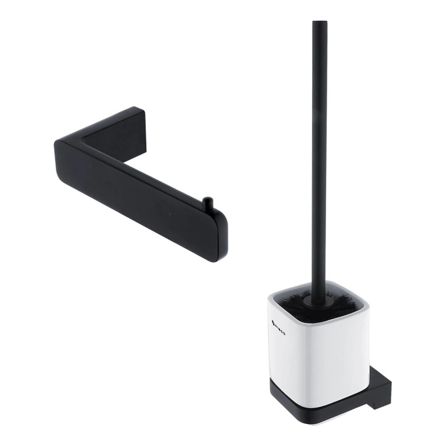 NIMCO MAC conjunto-94KN-90 - Piaçaba de parede e suporte para papel higiénico MAYA branco/mate preto