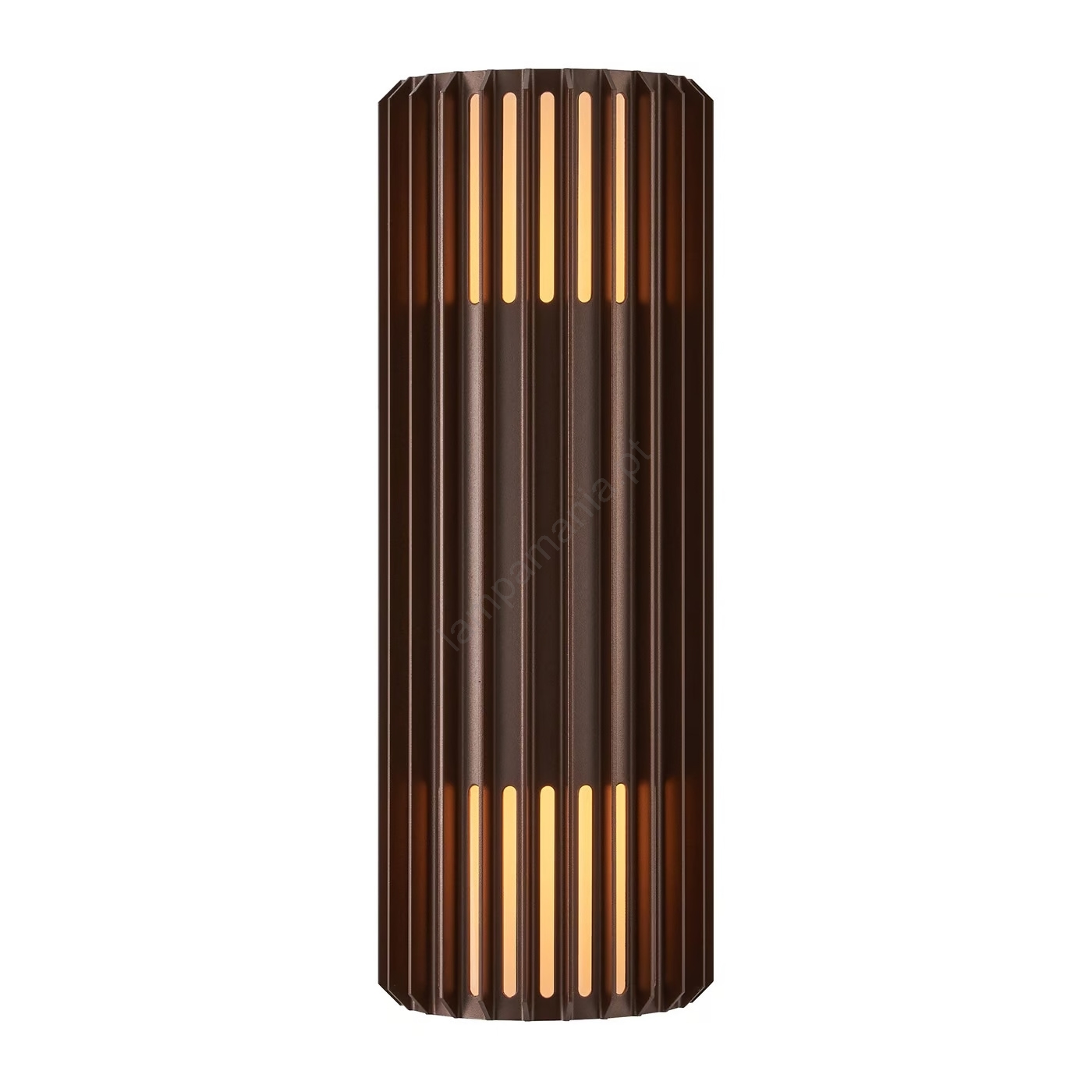 Nordlux - Iluminação de parede exterior ALUDRA 2xE27/15W/230V IP54 castanho caracteriza-se por um design agradável e funcional.  Uma lâmpada com casquilho E27 é adequada para a iluminação Aqui, pode comprar outras lâmpadas a preços vantajosos. Terá um complemento interessante para a sua casa.