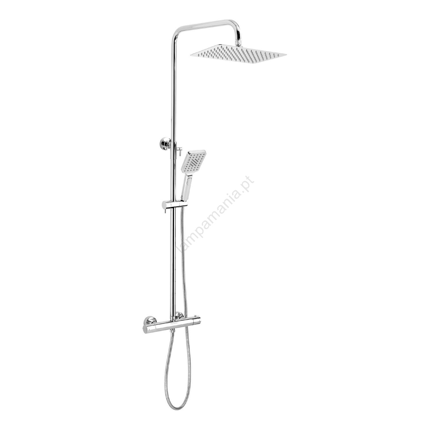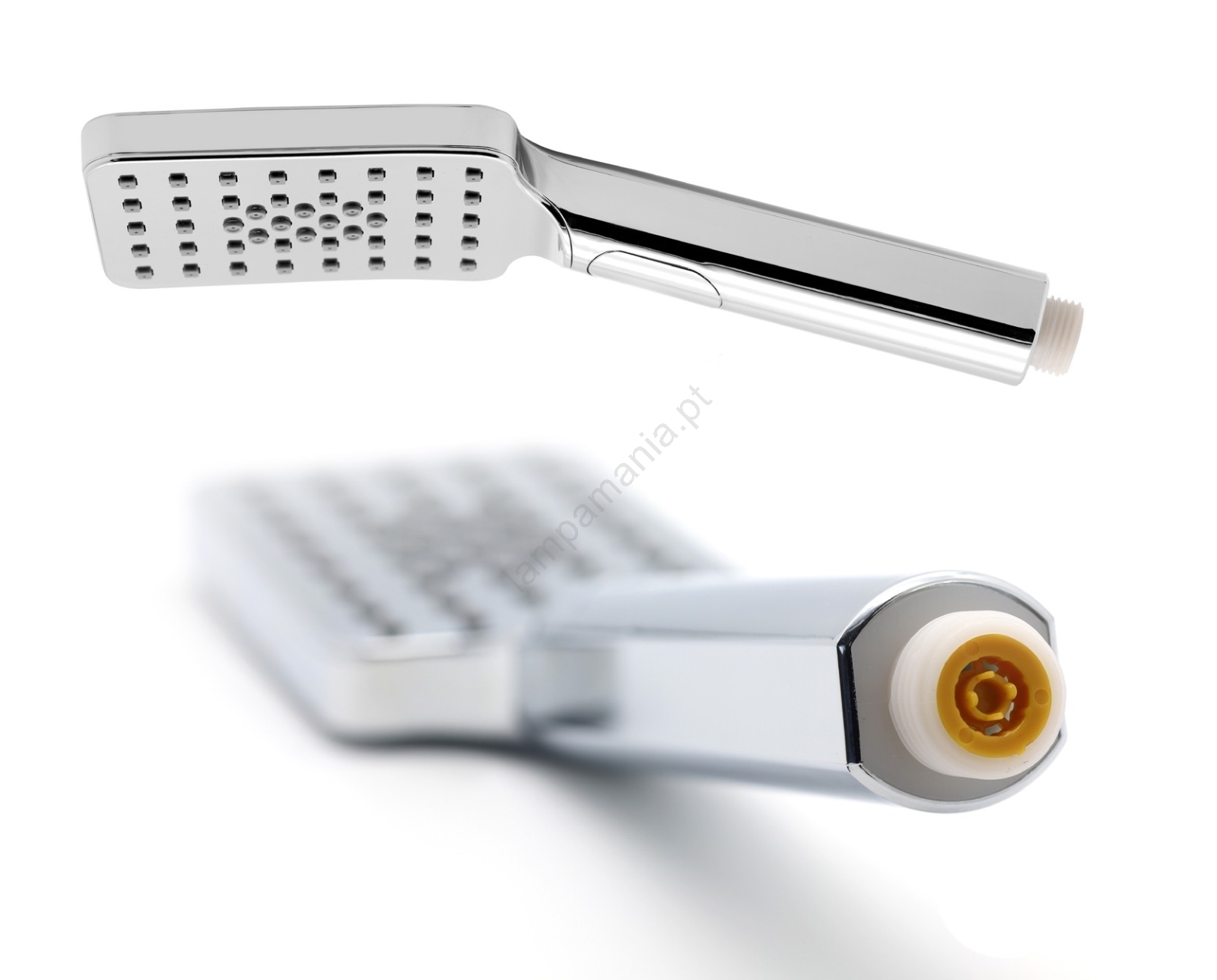 • O conjunto inclui: misturador termostático com cartucho, ducha manual com 3 posições, mangueira de chuveiro metálica com sistema anti-torção, ducha de teto.