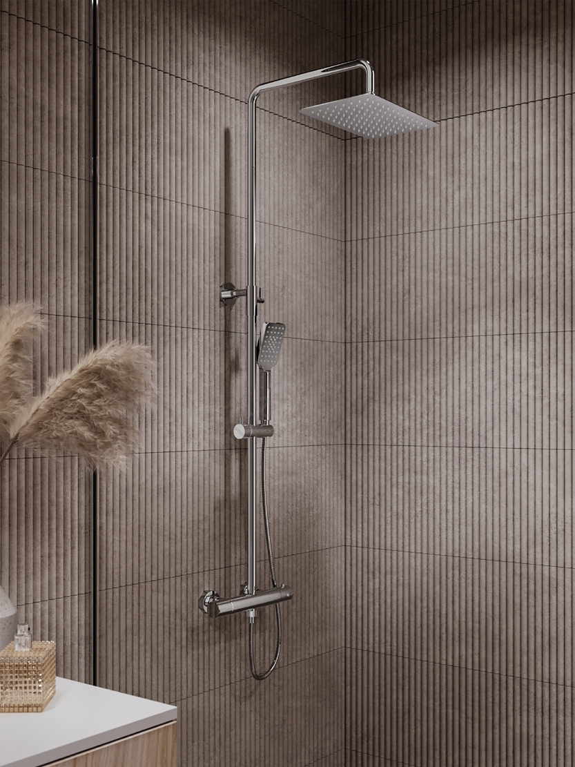• Este conjunto de chuveiro com misturador termostático é um complemento elegante para qualquer casa de banho.